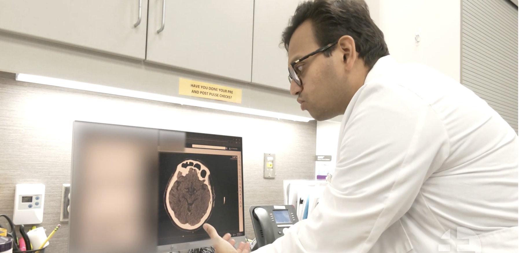 Topiwala met with Joyce to discuss a procedure called an emergent mechanical thrombectomy, “which is basically where I put a catheter in an artery, either in the hand or in the leg, and snake that catheter up to the brain where the blockage is. The catheter physically sucks the clot out of the body,” he explained.
