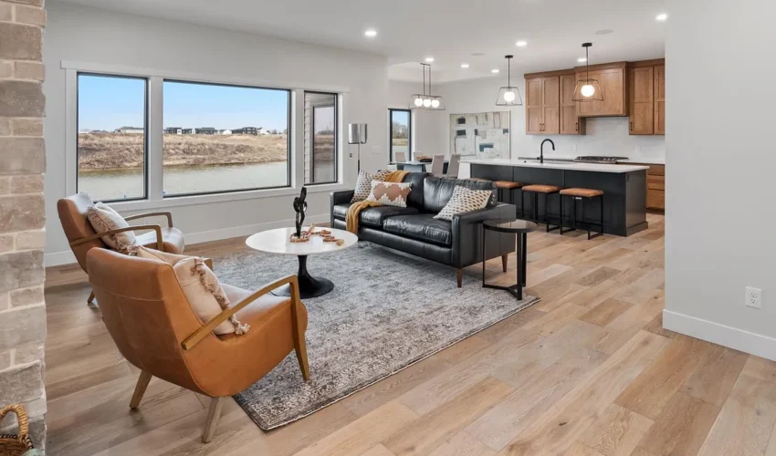 The home’s open floor plan takes full advantage of the natural setting around it.