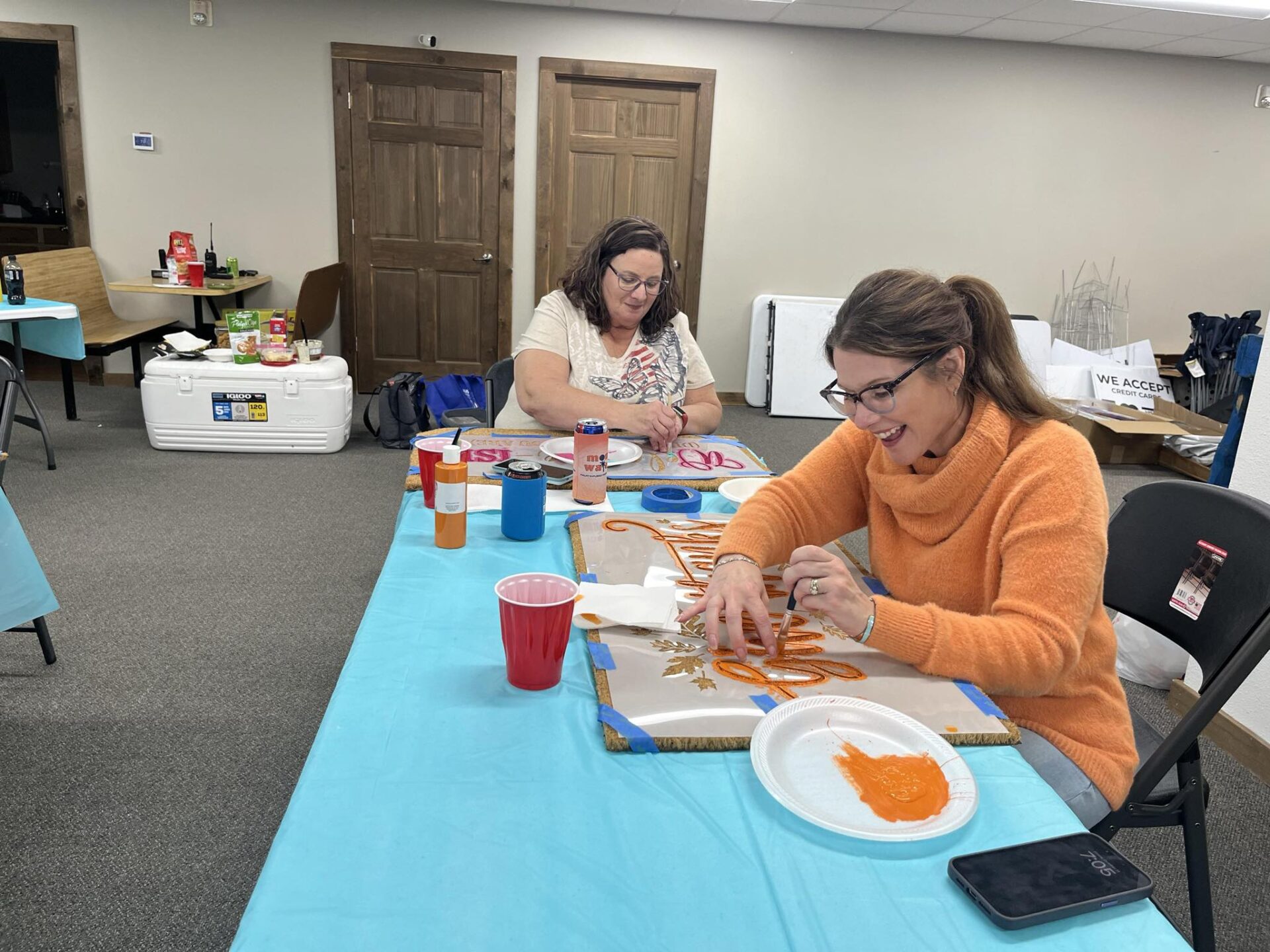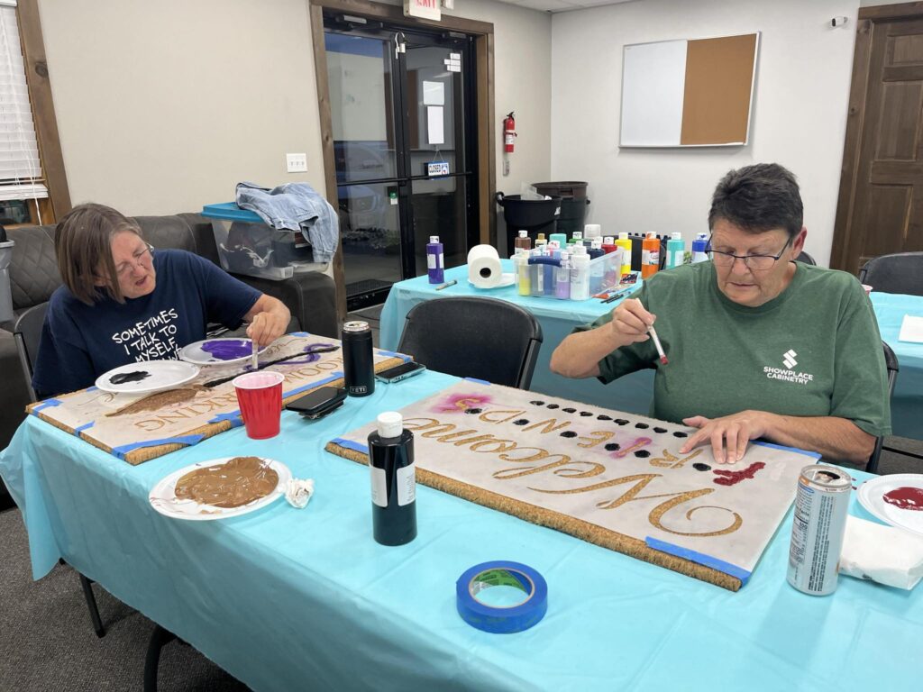 “That’s where you can come in and do a rug, a door hanger or porch board or if you want to come in and bring your own project,” DeVries said. “It doesn’t have to be anything that I do. You can bring in your cross-stitching, your paint-by-number and work on it. I’m here, so you might as well. I want everybody to just come hang out if you want and just be together and paint.”