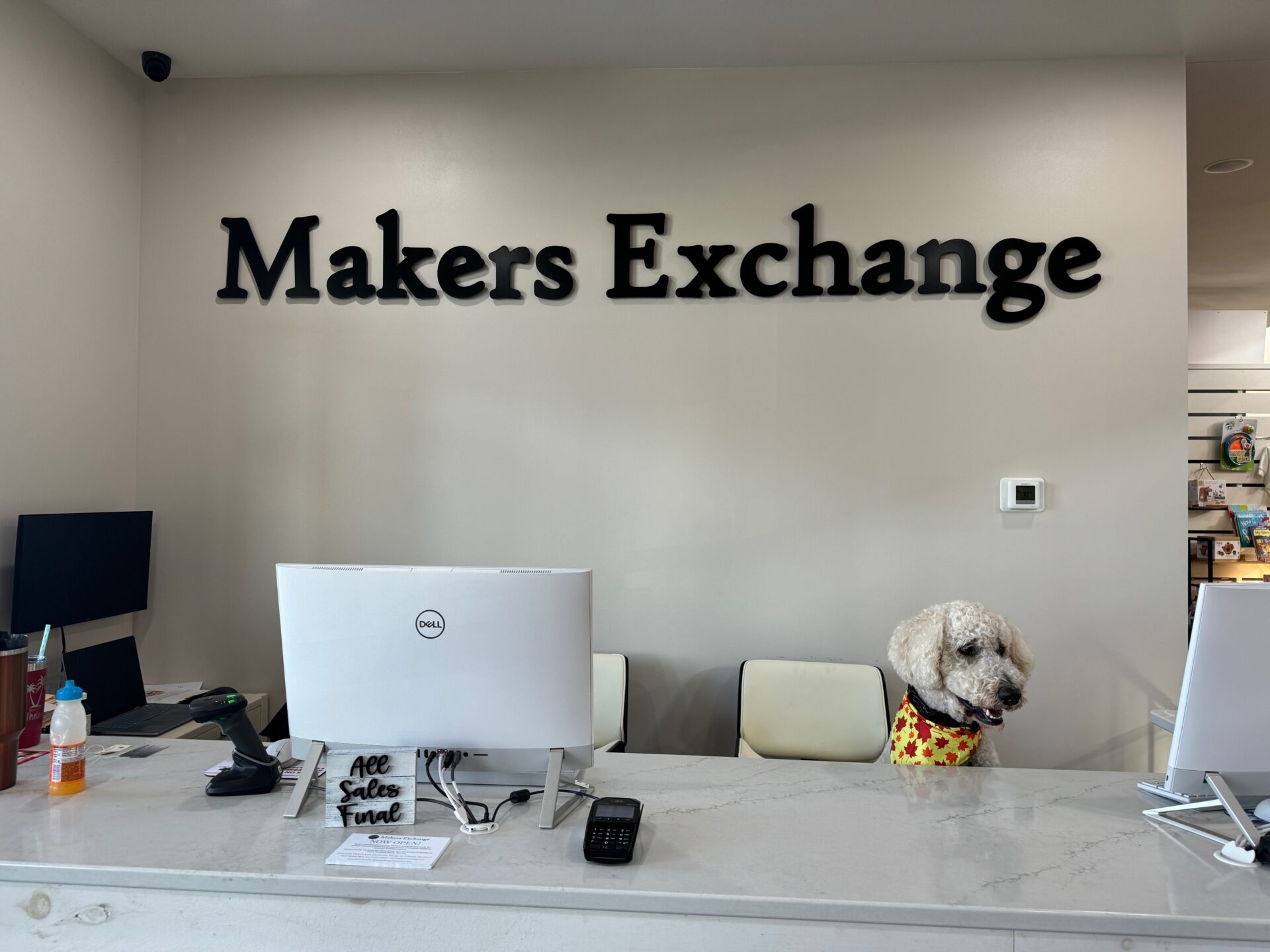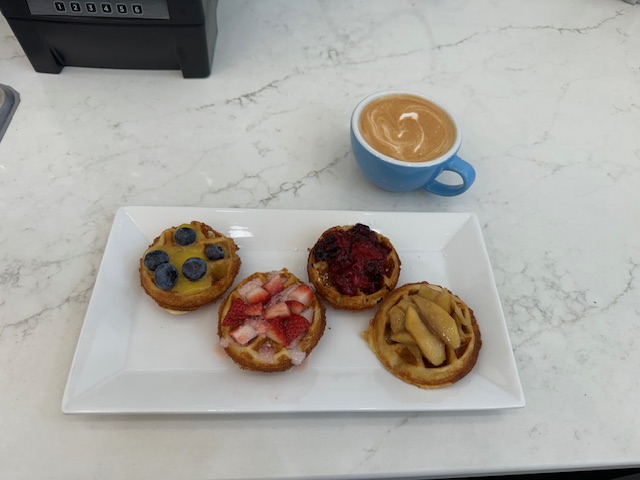 That includes food. Makers Exchange just opened a new area offering gourmet coffee and artisan waffles.