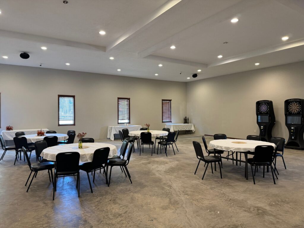 There’s also a large event venue that can be subdivided and includes a stage.