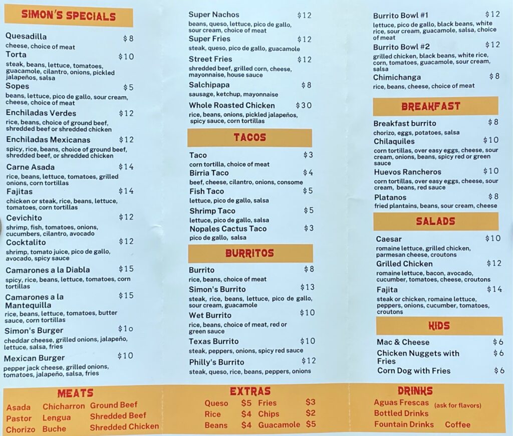 Simon’s Tacos, named after a family member, is open from 10 a.m. to 10 p.m. Sunday through Thursday and 10 a.m. to midnight Friday and Saturday.