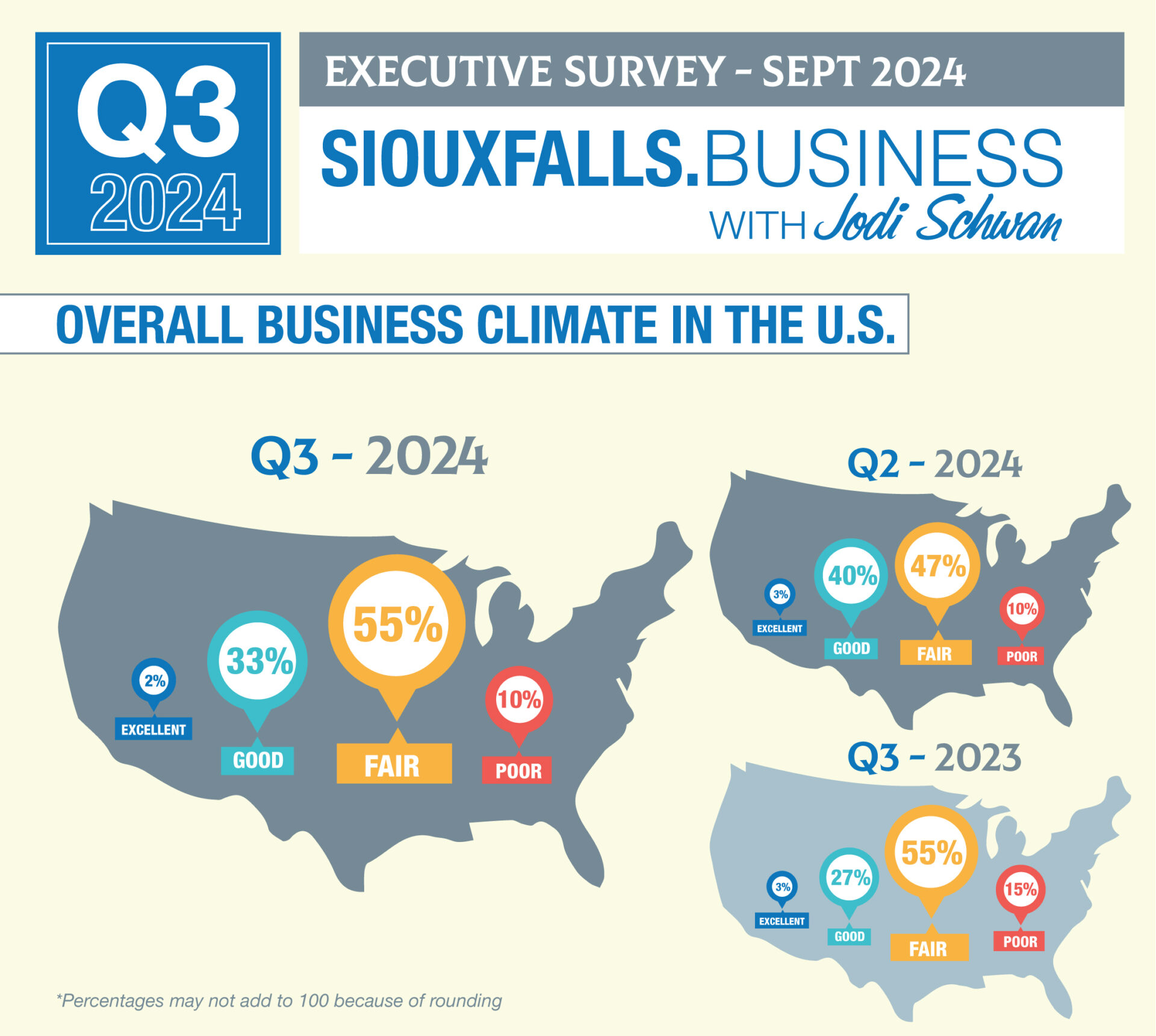 “These feel-good stories on a national level may not fully translate to our local economy because Sioux Falls is in a much tighter job market compared to the nation and this is not Wall Street. Once again, the optimism around the Sioux Falls business climate is refreshing. Despite all of the issues we have faced since 2020, local companies still feel this is a great environment to run a business.”