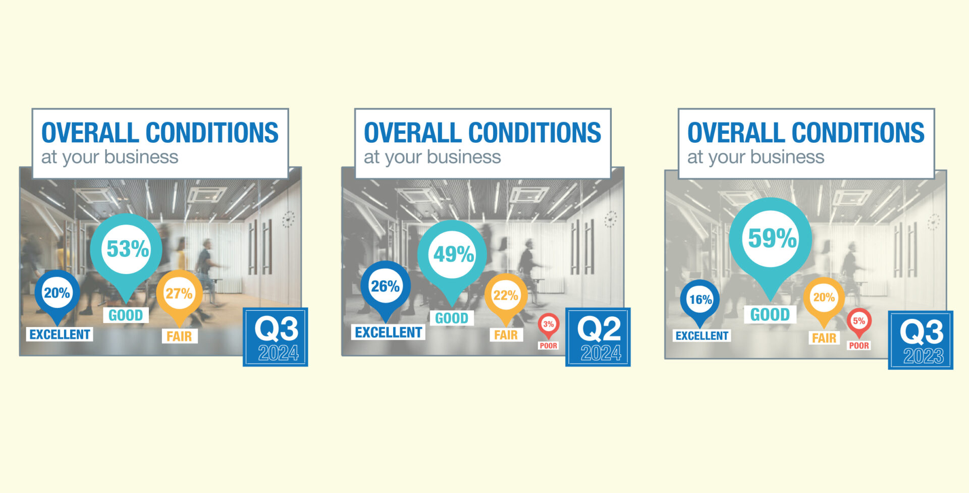 Perceptions of the U.S. business climate also slipped from the prior quarter, with 35 percent calling it good or excellent compared with 43 percent three months ago.