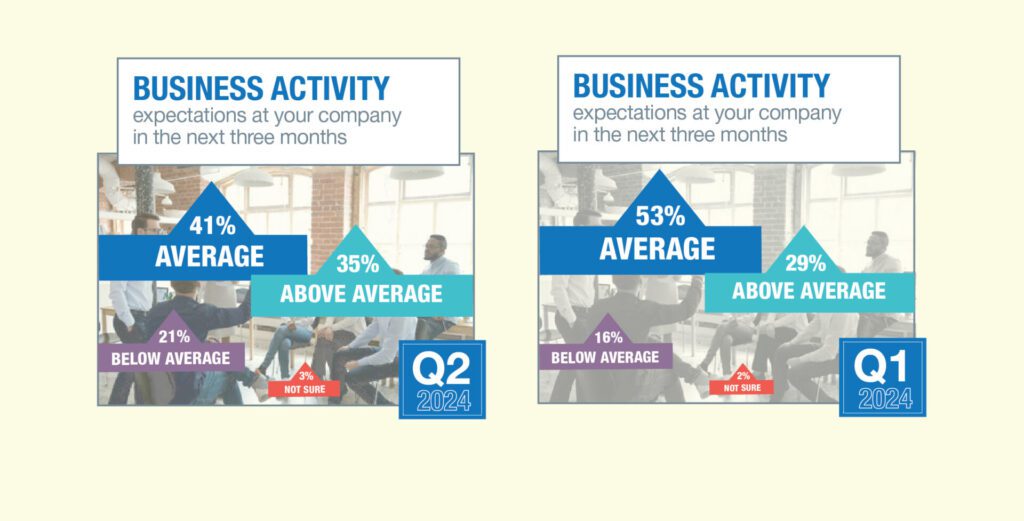 Looking ahead, more than three in four CEOs say they expect average or above-average business activity in the next three months.