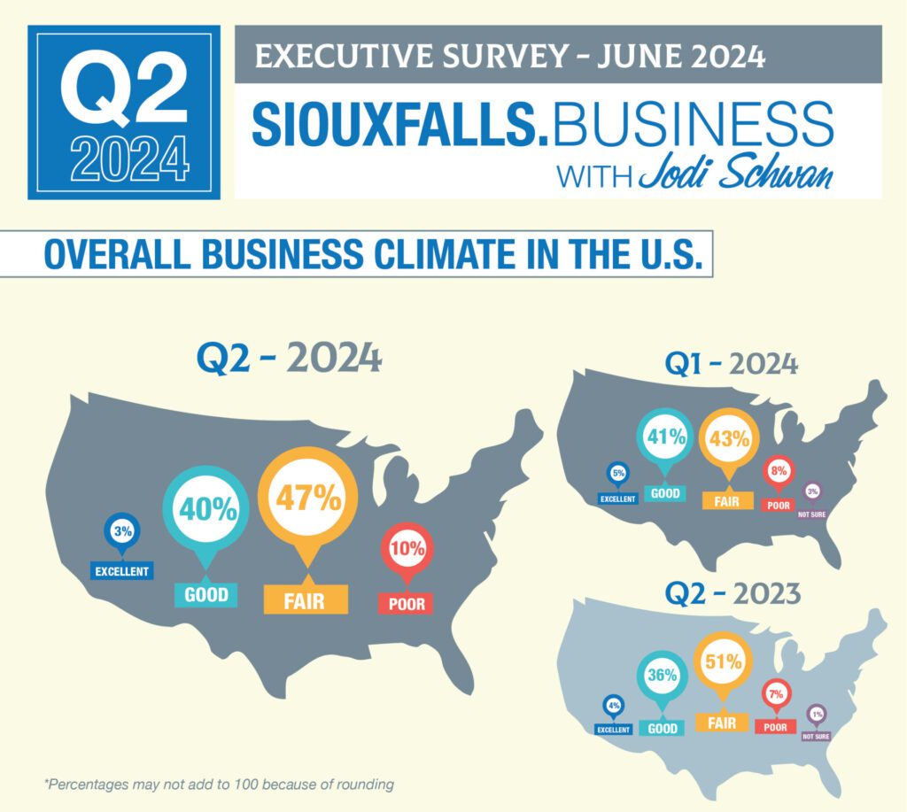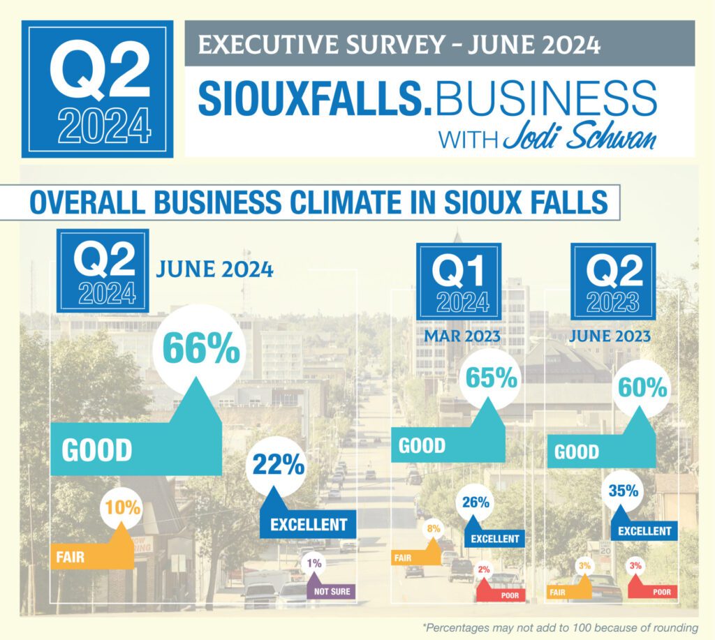That’s according to the most recent SiouxFalls.Business quarterly CEO survey, conducted in partnership with the Augustana Research Institute and the Sioux Falls Development Foundation.