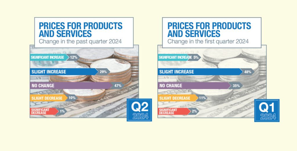 Earlier this year, more than half reported price increases, and now it’s 41 percent, “including just 12 percent that said price increases were significant,” he said. “That’s certainly good for consumers and B2B sales, and helps promote a more stable business environment.”