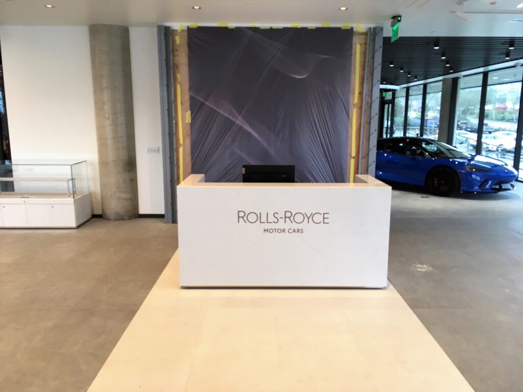 “It’s pretty unique and complicated – all curved, solid-surface, custom stainless steel,” CEO Jud Pins said. “It’s the first of this new flagship Rolls-Royce.”