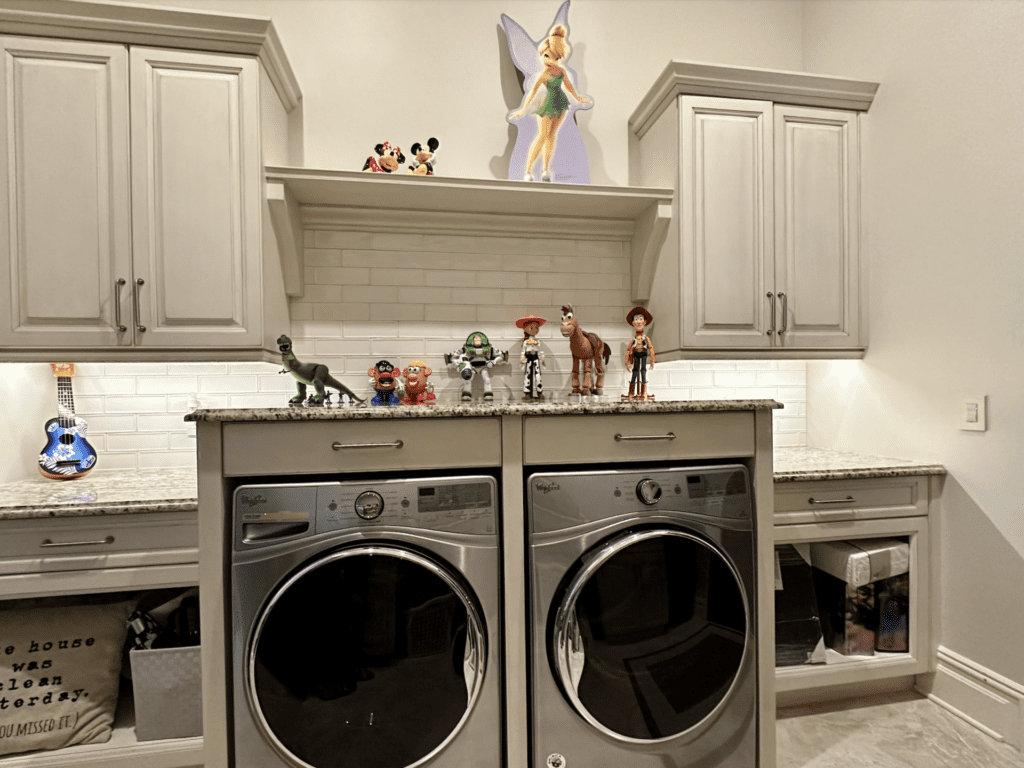 His wife, Delena, enjoys hunting for vintage Disney memorabilia and has it displayed in the library as well as throughout the home.