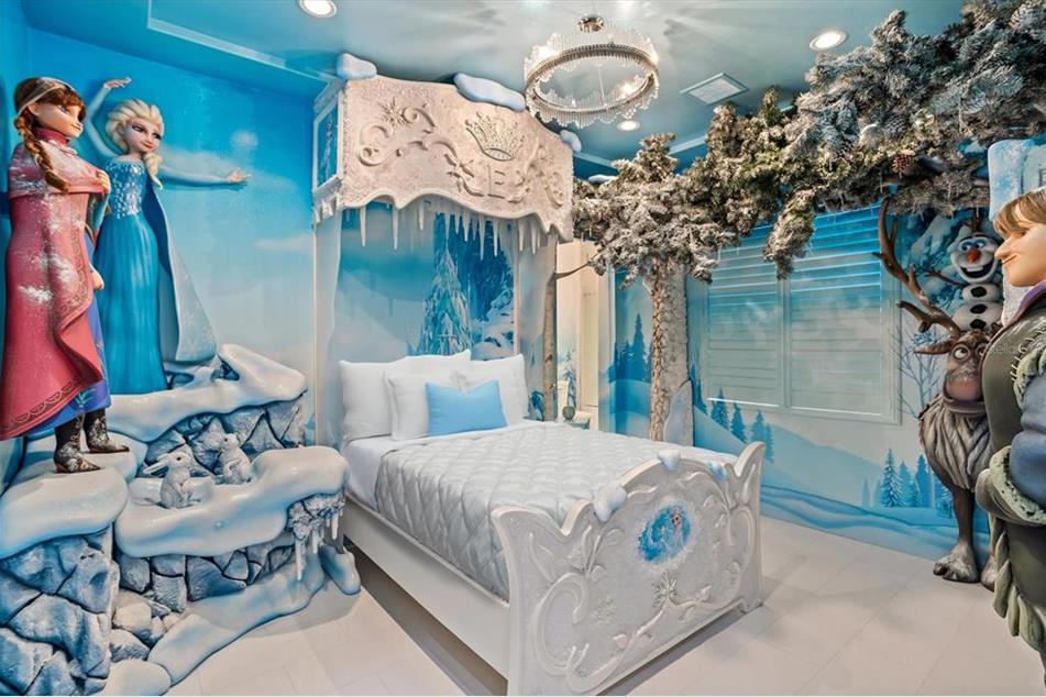 A home featured in the article from a member of the Bacardi liquor family includes a “Frozen” bedroom featuring “life-size figures of Anna and Elsa, as well as a bed frame dripping with giant icicles.”