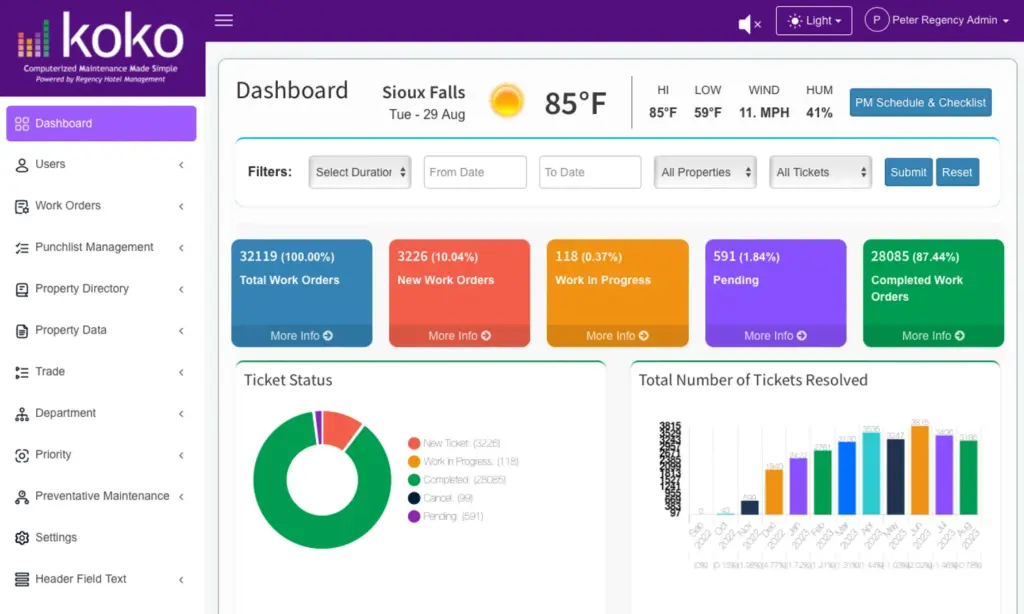 With Koko, hotel staff can enter geo-located work orders for anything from needed repairs to guest complaints. The issues are logged, tracked, and closed out as they are resolved.