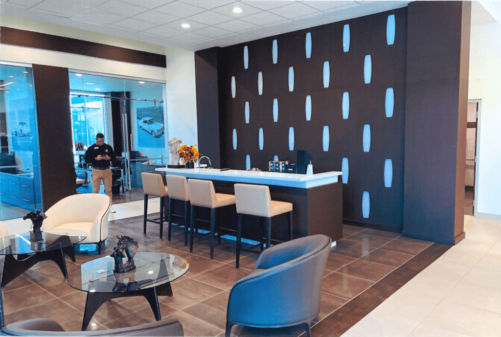 The new building will be mostly show floor, with a double-wide service reception area to drop off cars. A dedicated staff for pickup and delivery will continue to bring vehicles to and from their owners as well.