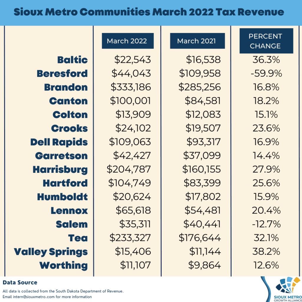 Here’s a look at the March sales tax report from communities in the Sioux Falls metro area: