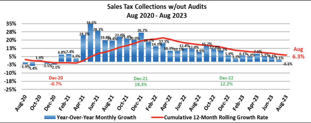 Sales tax revenue is up 6.3 percent on a 12-month rolling average.