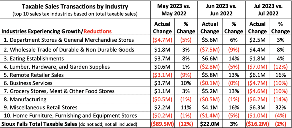 A look at the city’s top 10 industries based on taxable sales shows what’s contributing to part of the year-over-year drop. The top 10 represents 59 percent of sales tax revenue.