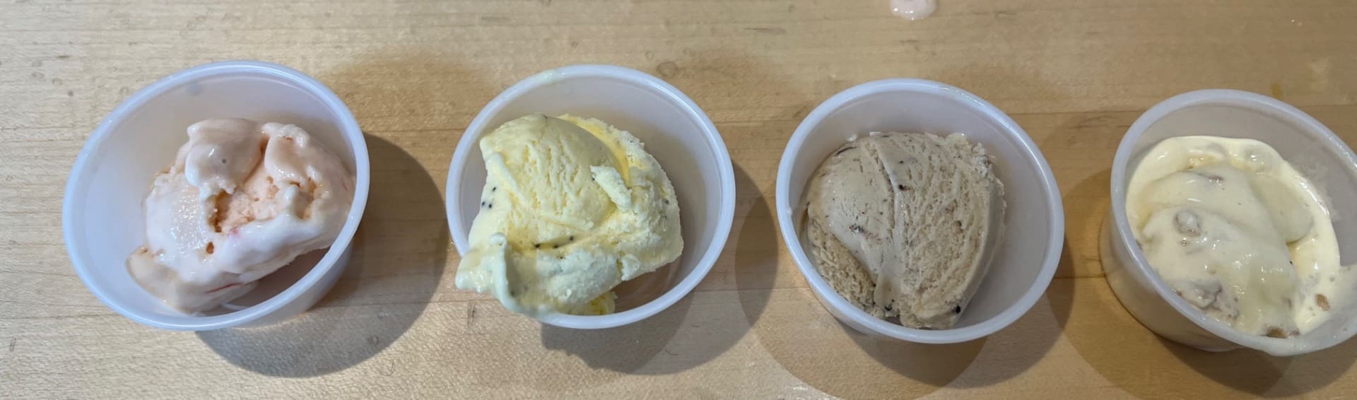 - Hive Dive — Honey base, honeycomb candy, honey caramel swirl.