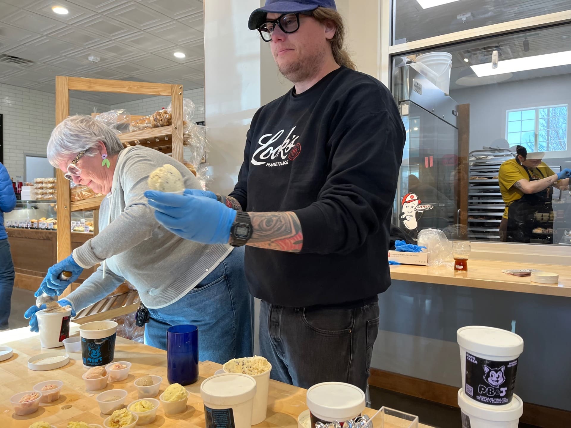 Two of Leemkuil’s particular favorites: Hive Dive, which uses honey in its base and has honeycomb mixed in, and First Blush, a strawberry base with strawberry jam swirled into it.