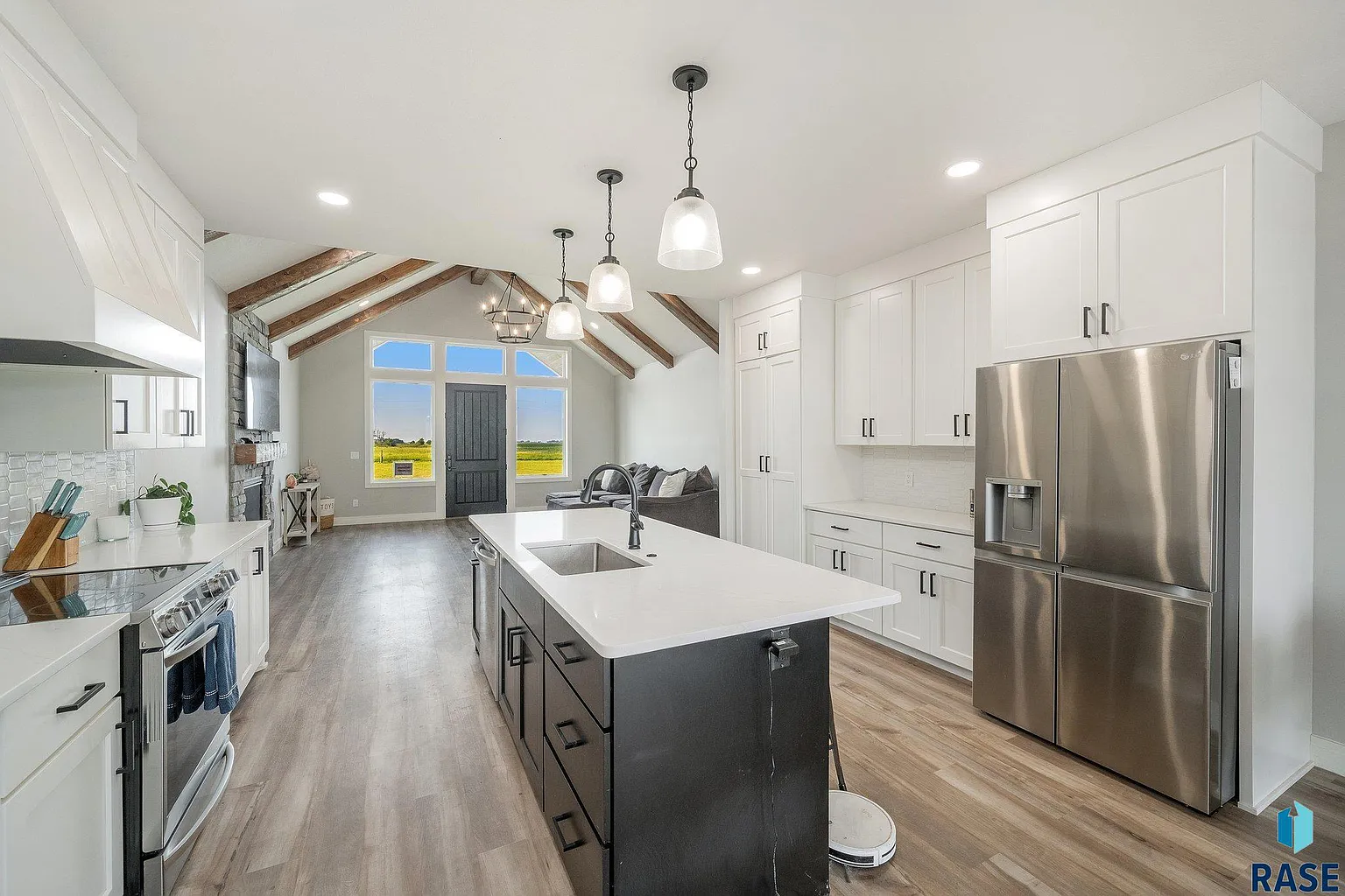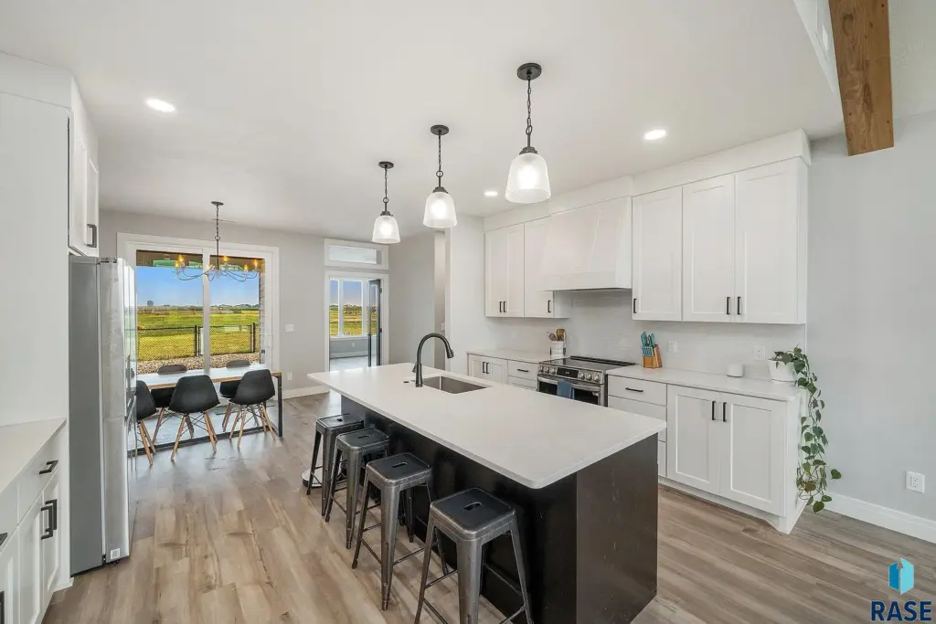Custom cabinets and granite counters from Sioux Falls Kitchen & Bath show the level of quality construction present throughout the home.