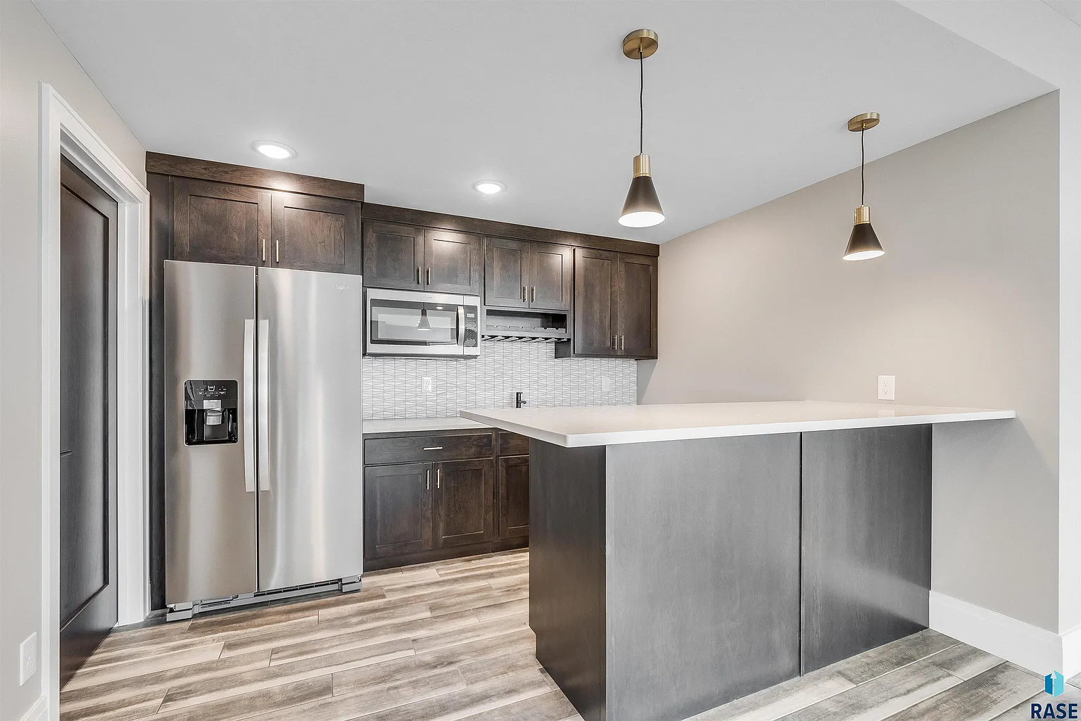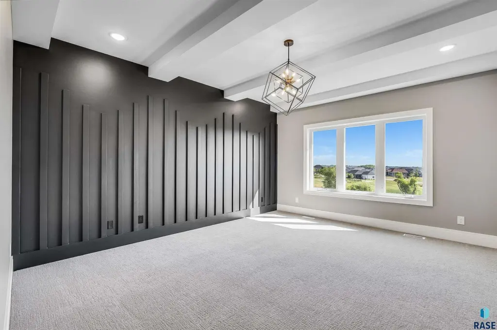 The lower level includes an expansive family room with gas fireplace, cabinetry and a wet bar, plus a bonus theater room and two additional bedrooms.