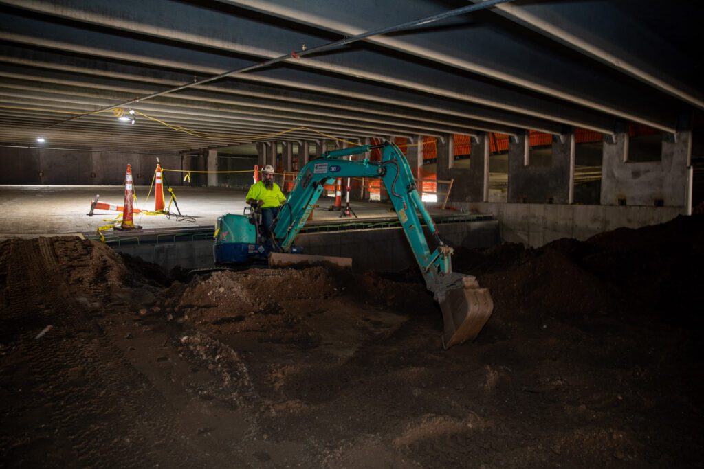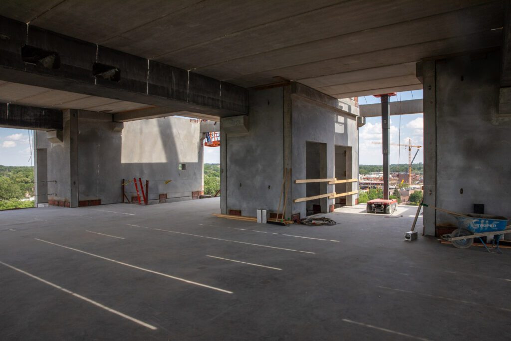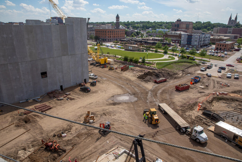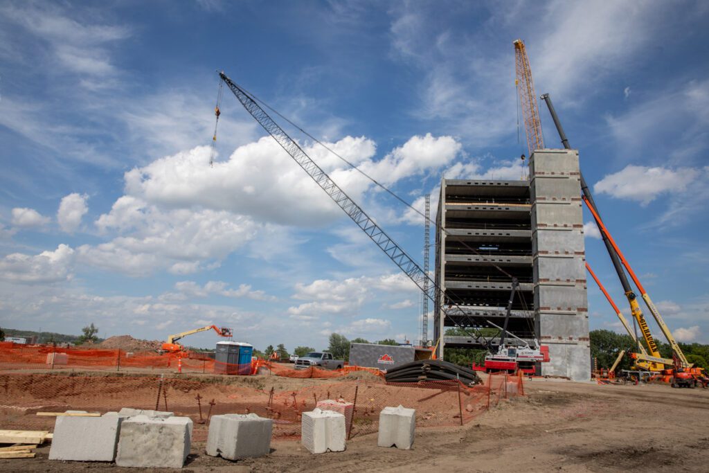 “A lot of the area of the site has been able to be used for parking and circulation, and things like that will go away,” Jessen said. “The site is going to start feeling like an urban, dense area, so we’re putting all the subcontractor and worker parking in the ramp itself.”