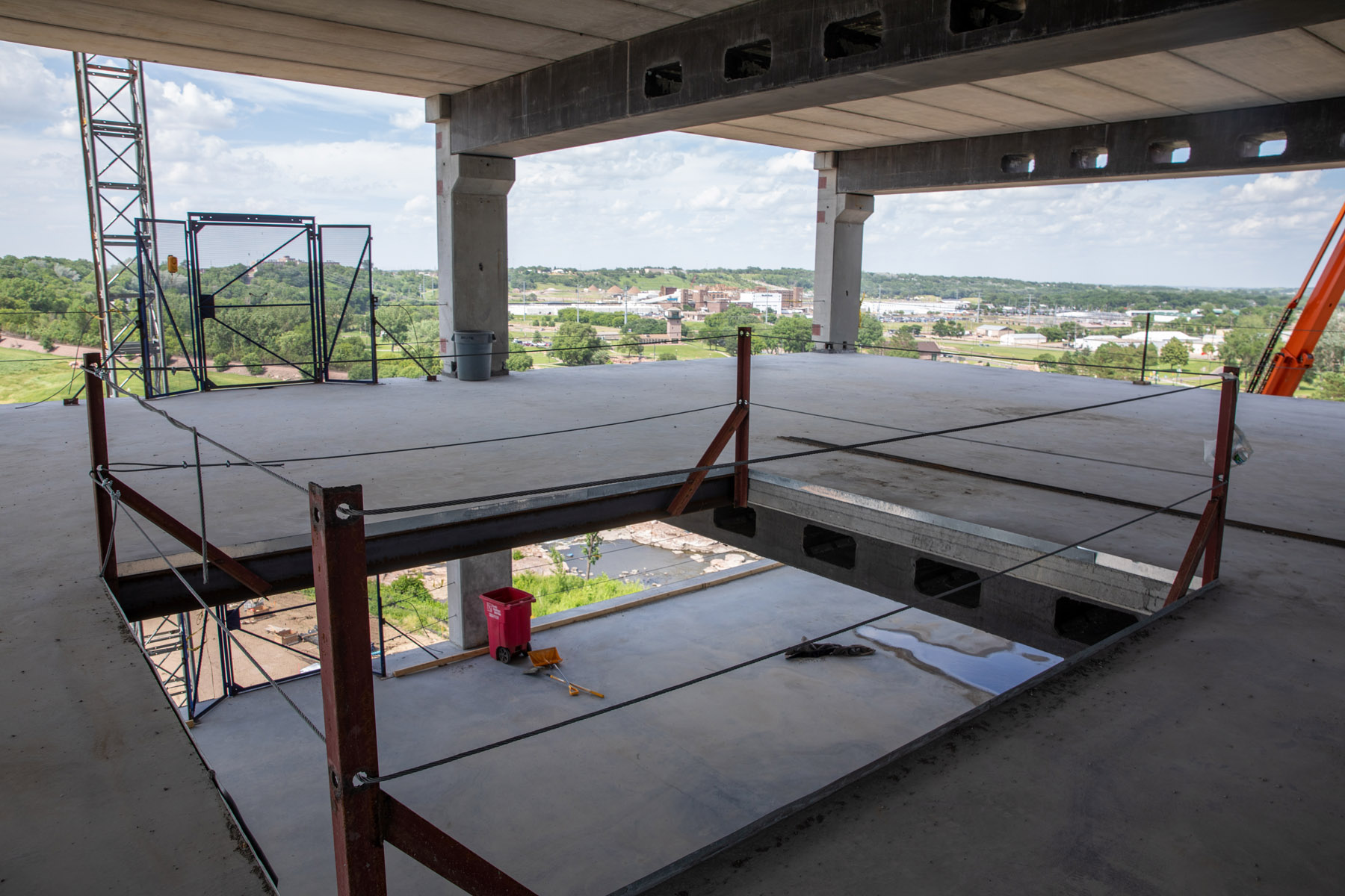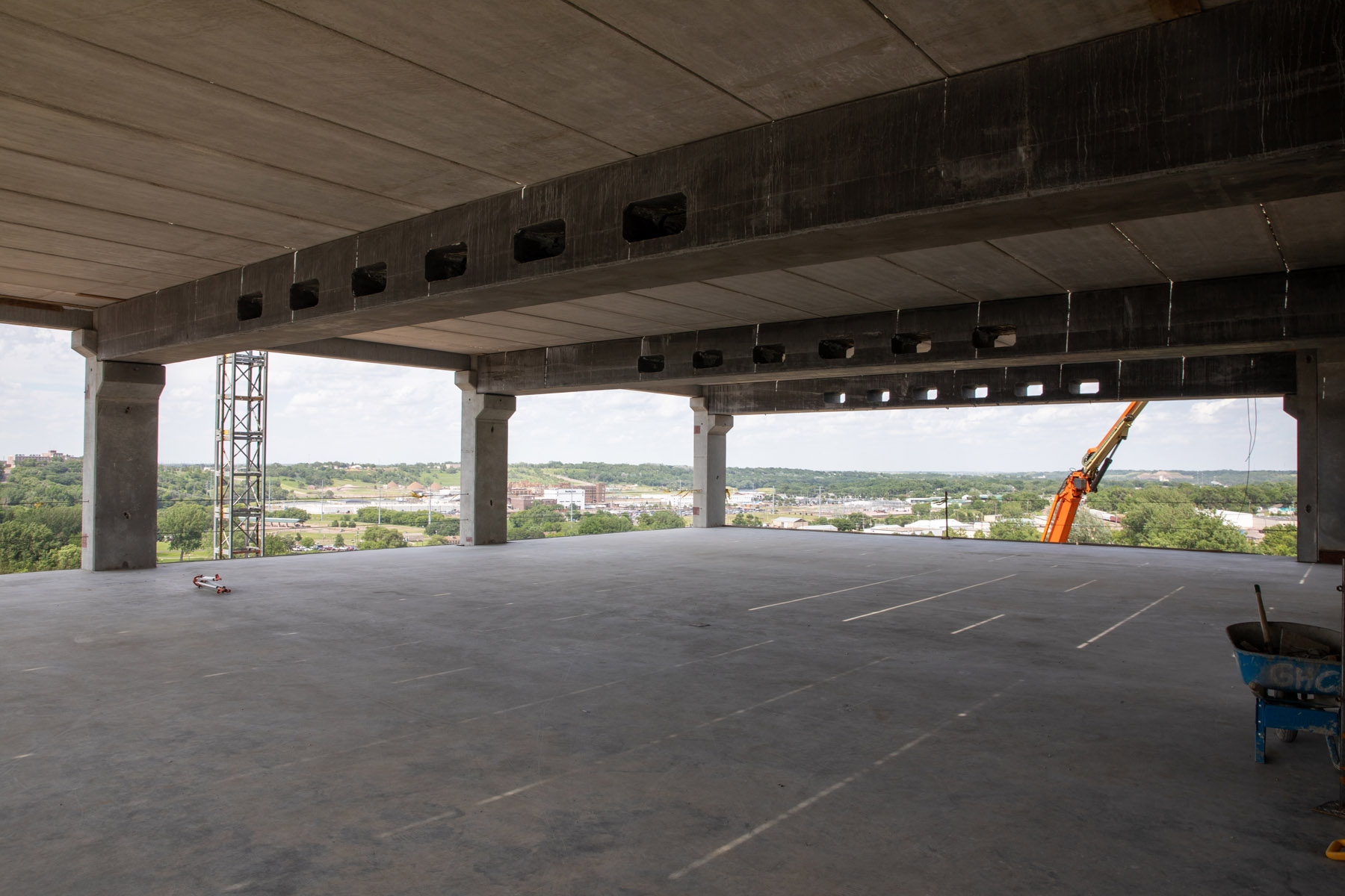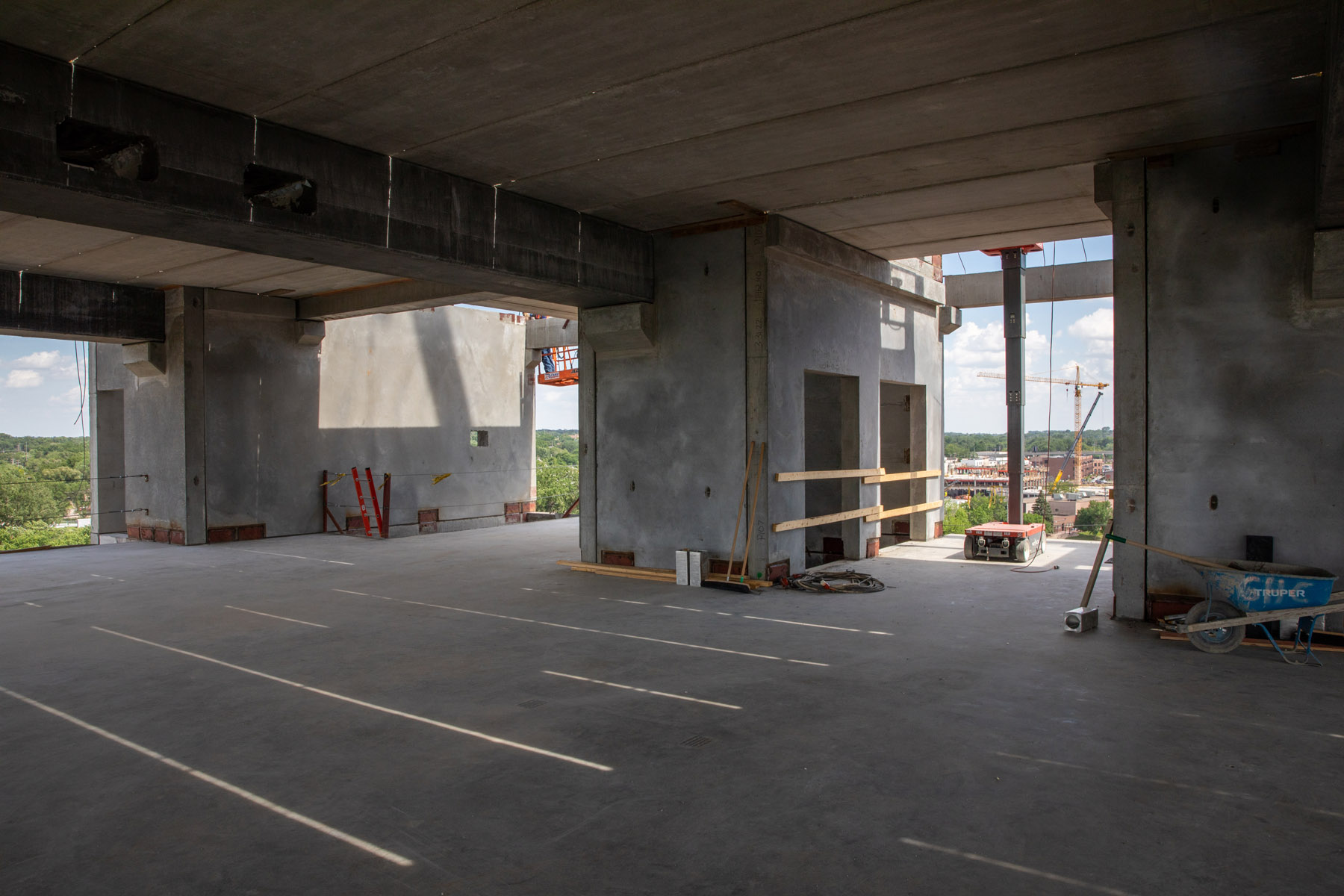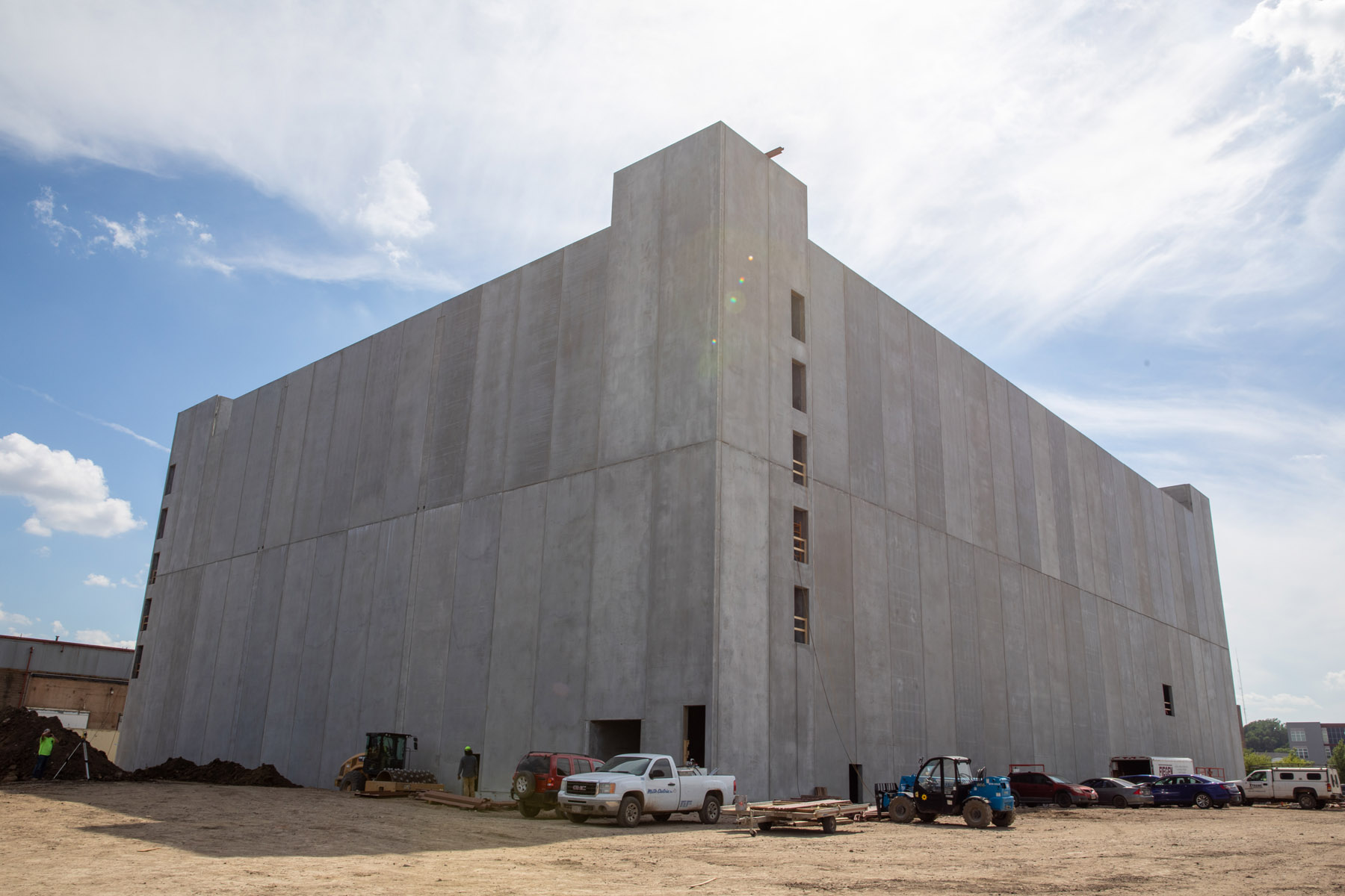 The parking ramp soon will start serving its intended purpose: a place to park. It will be used by all the workers coming to the site whose existing parking will start to be taken up by new construction.