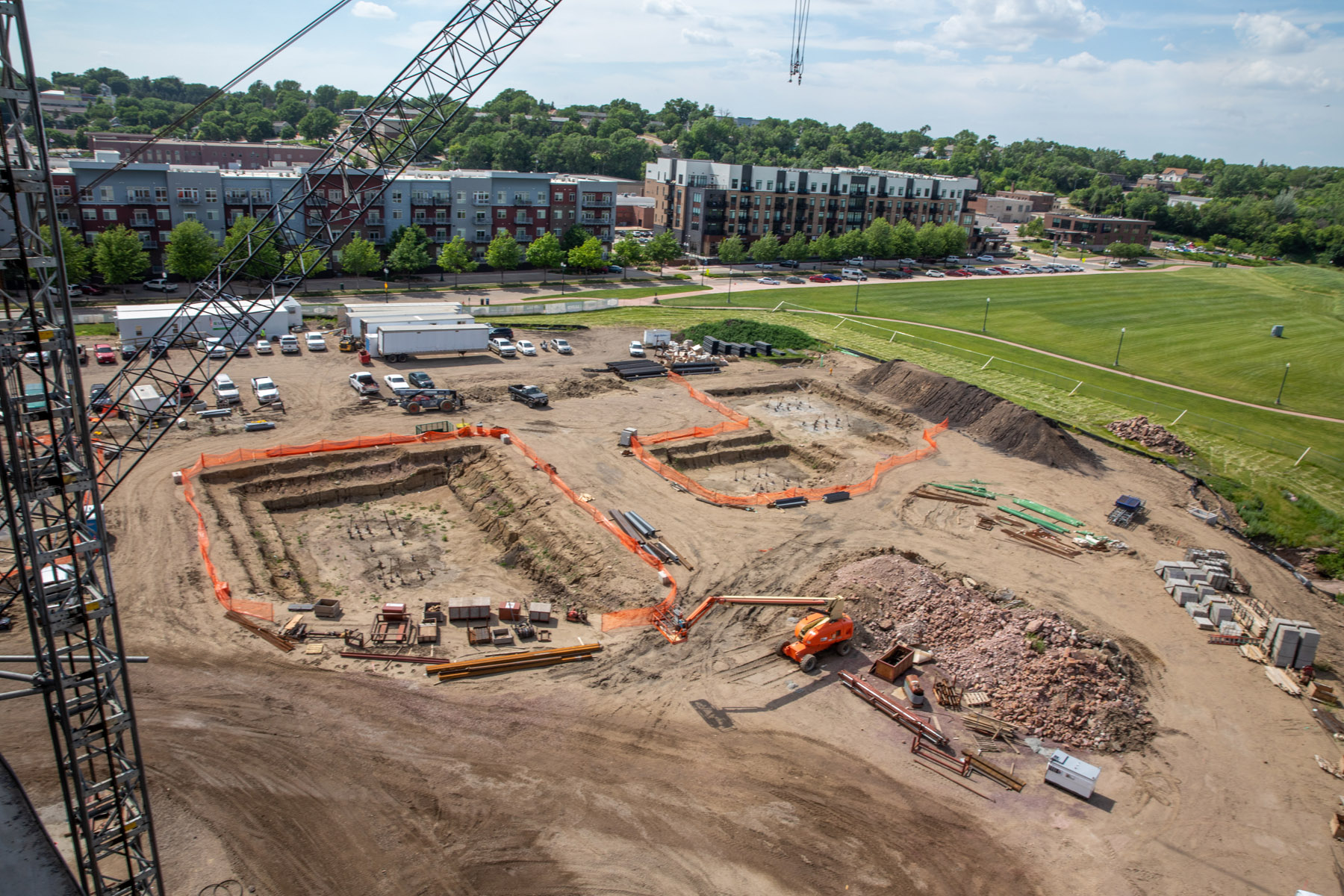 The downtown skyline is starting to change adjacent to Falls Park as The Steel District is making progress on its first structures.