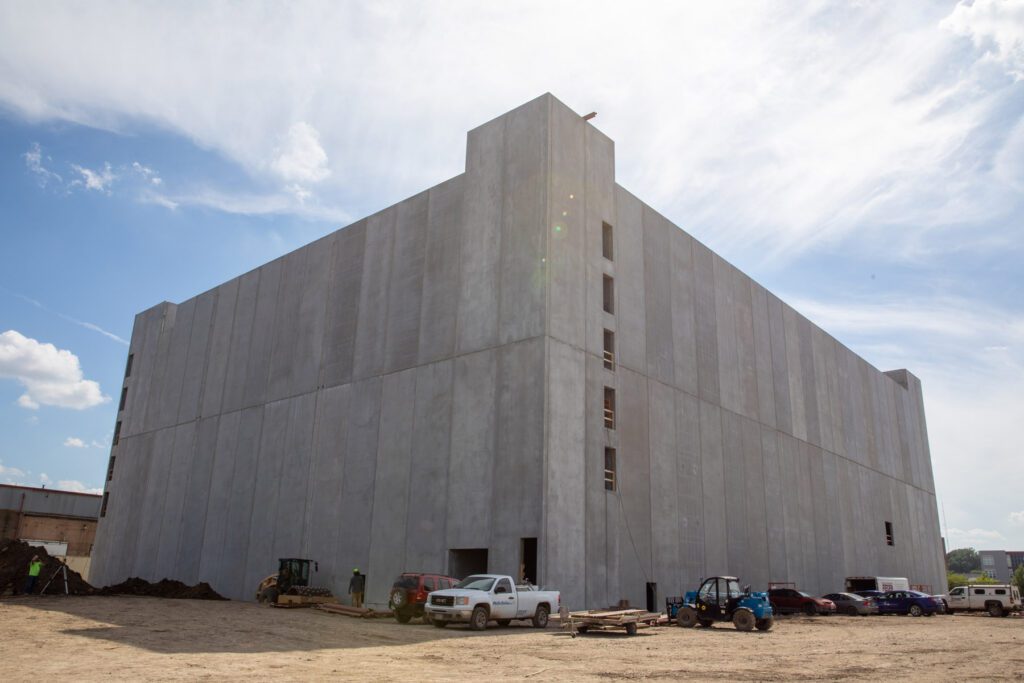 The building is the first of its kind in the nation to use an ultra-high-performance concrete, provided by Gage Brothers Concrete Products, Jessen said.
