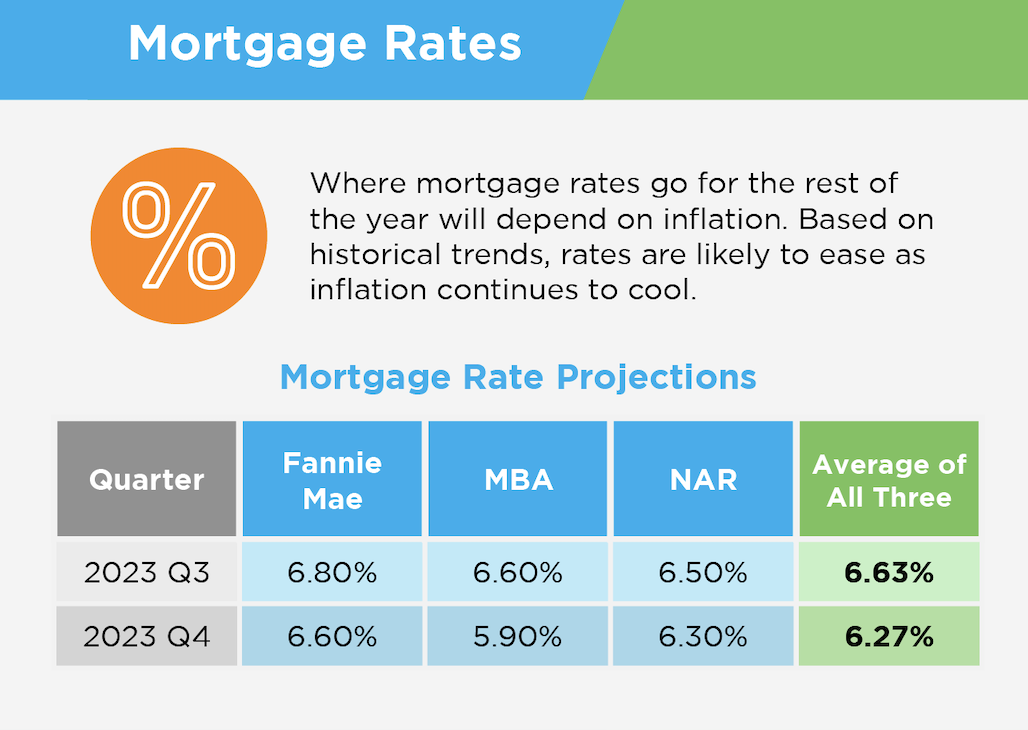 - Sweet mortgage rates: Despite the inflationary pressures, mortgage rates are expected to become more buyer-friendly. So you can lock in a mortgage with lower rates, giving you a fantastic chance to start building your wealth through real estate. Also, there are a handful of creative financing avenues now available to get buyers into homes that align with the affordability we were seeing before May 2022 when rates were at a historic low.