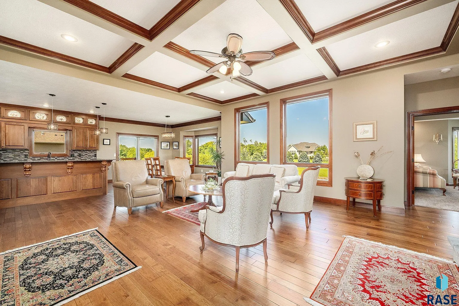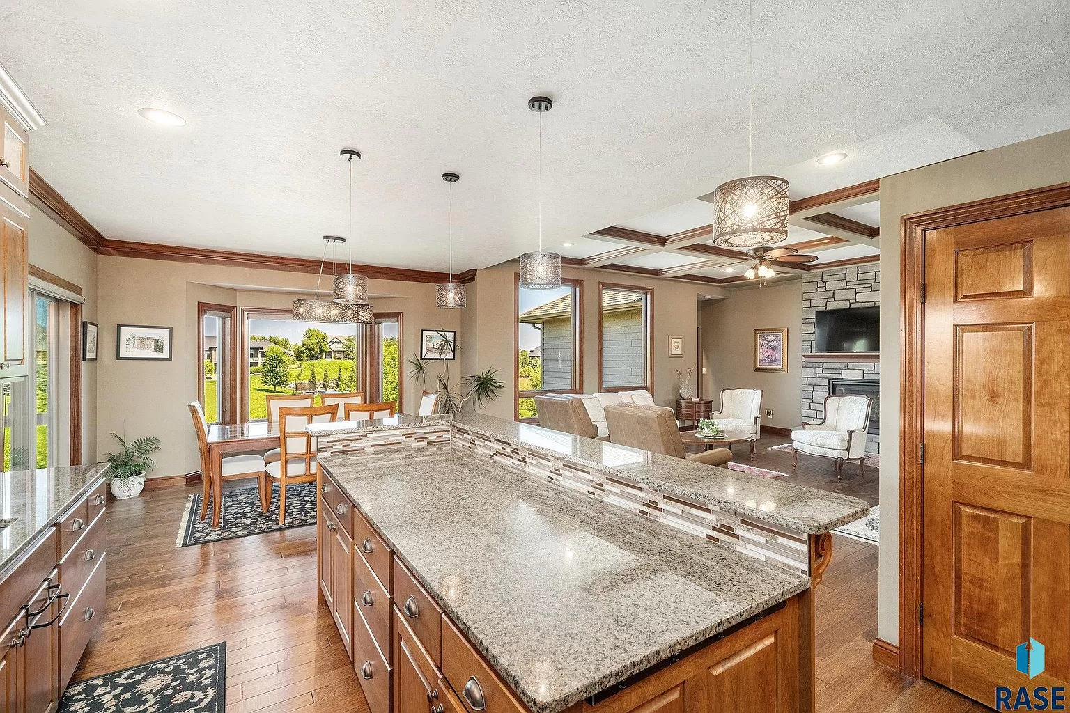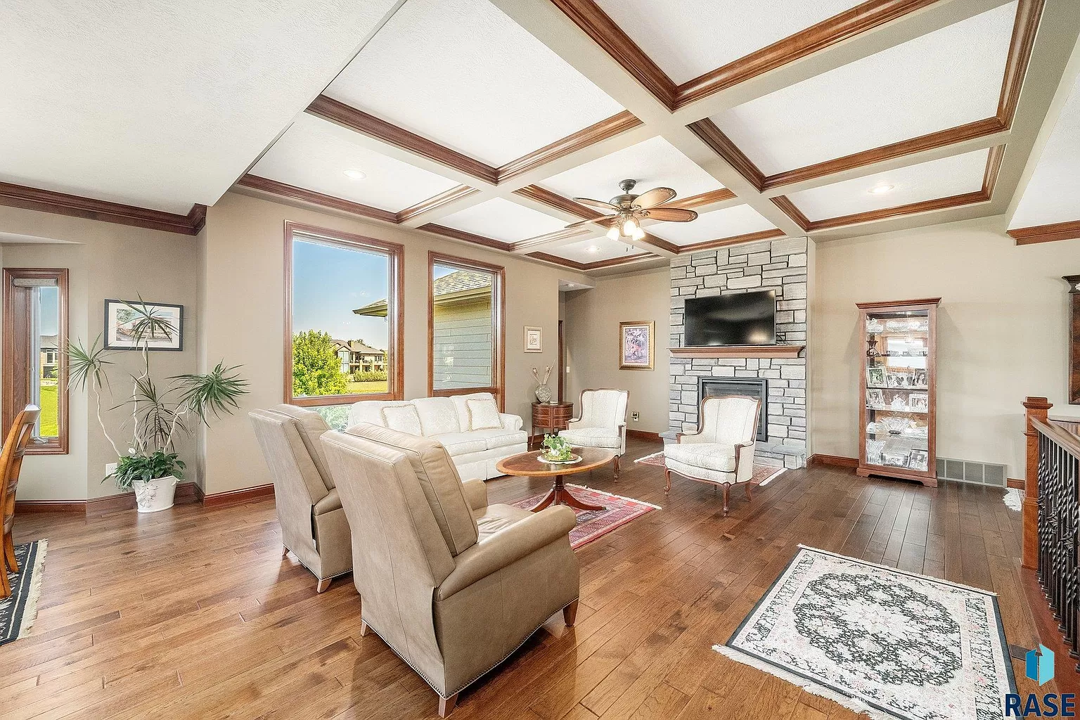 “The floor plan has a spacious flow accented by beautiful hardwood floors,” Stockberger said. “The kitchen leads to a sunlit living space with a stone fireplace and coffered ceiling, which invites you to relax throughout the day.”