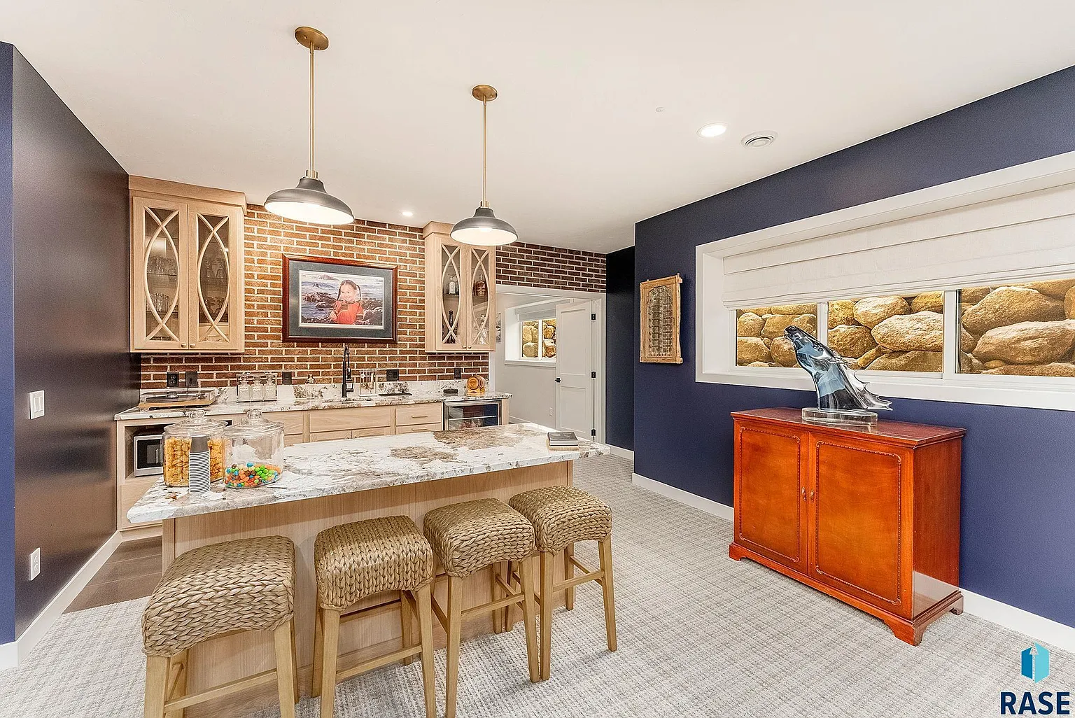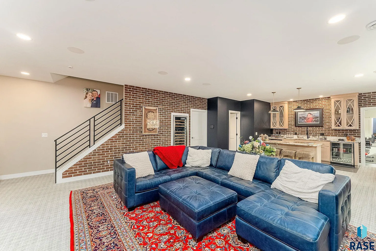 The lower level is designed for both function and fun, offering a custom fireplace, upgraded wet bar with a new built-in dual zone system and a 300-bottle wine refrigerator with a brick accent wall.