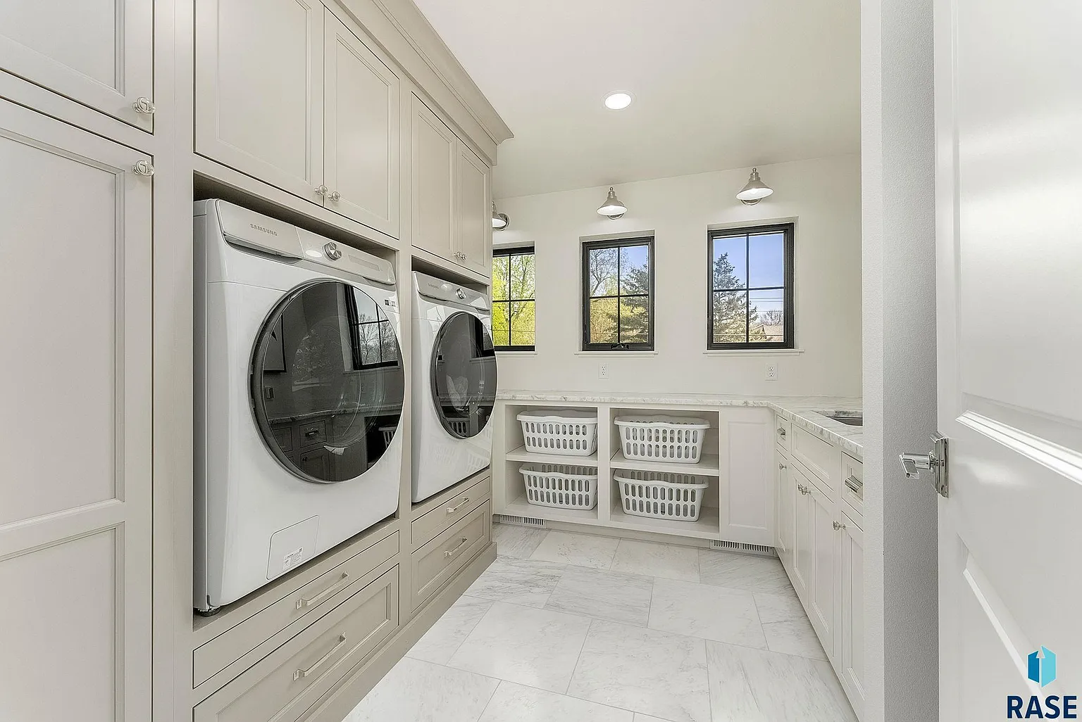 Another laundry room adorned with marble countertops also is located on this floor for complete convenience.