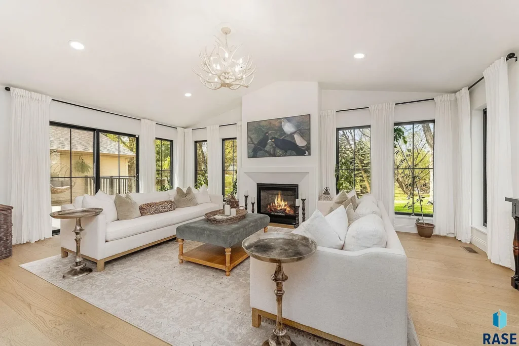 Unwind around a cozy gas fireplace, or step out to the adjacent composite deck, perfect for entertaining or peaceful relaxation.