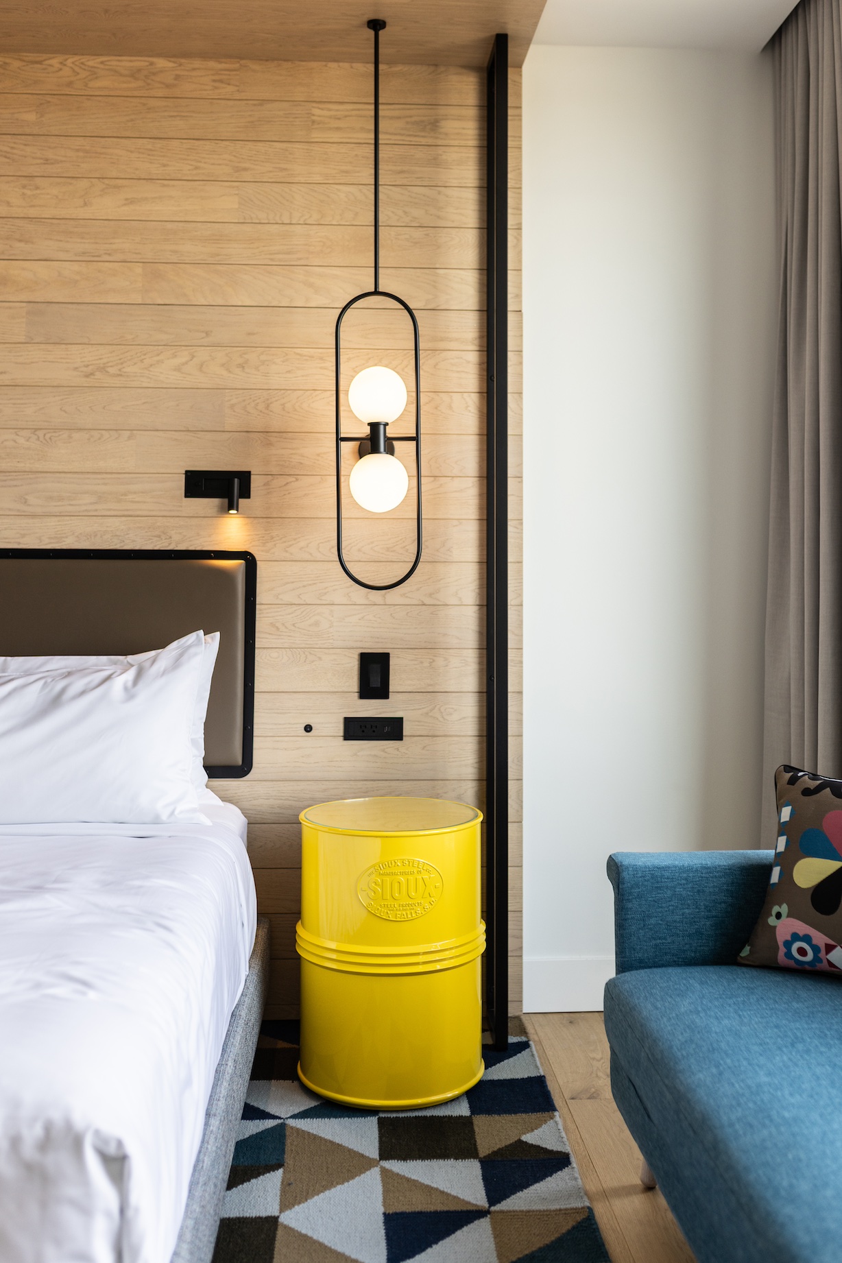 The hotel is uniquely designed to reflect the history of the former Sioux Steel property and the broader Sioux Falls community, blending Scandinavian with Native American influences in the colors, art and general aesthetic.