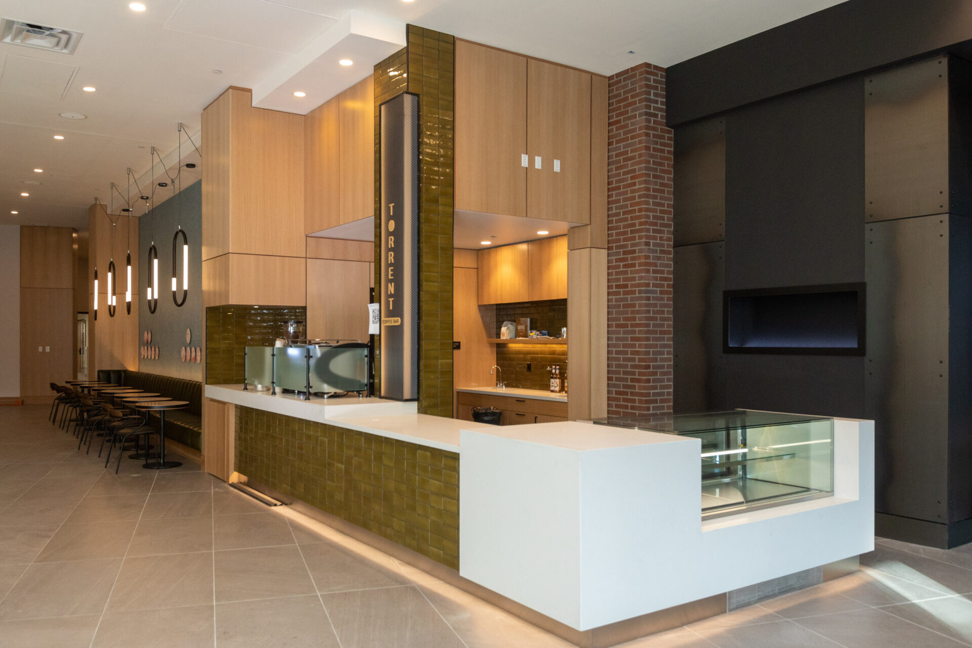 The main lobby also includes Torrent Coffee Bar, a coffee and pastry bar featuring coffee from Coffea Roasterie and pastry from Look’s Marketplace. The Spice & Tea Exchange is providing tea for the restaurant and guest rooms.
