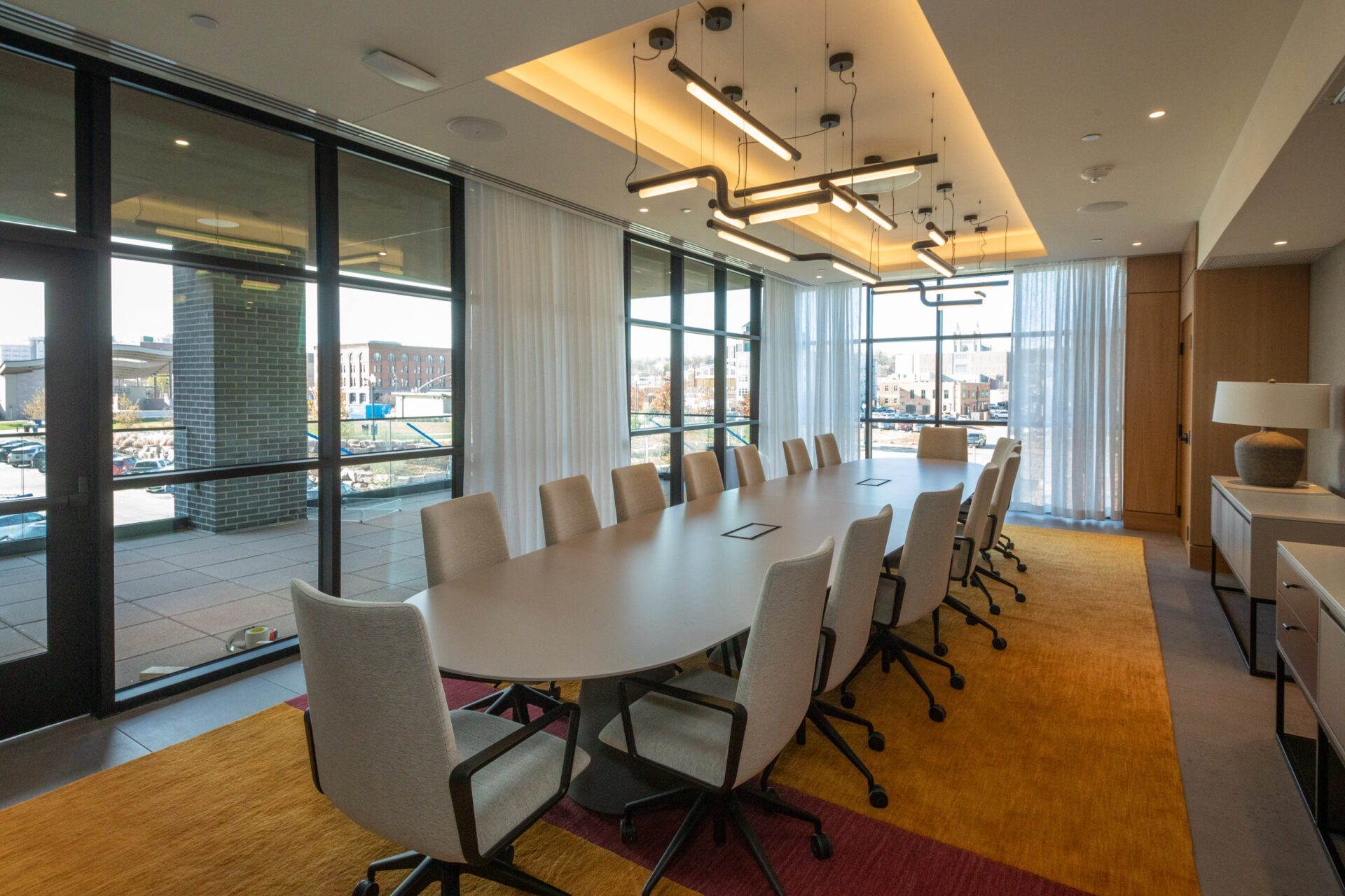 There’s also a boardroom overlooking Levitt at the Falls that includes a patio, while additional meeting rooms offer collaborative space with soft seating and various levels of formality.
