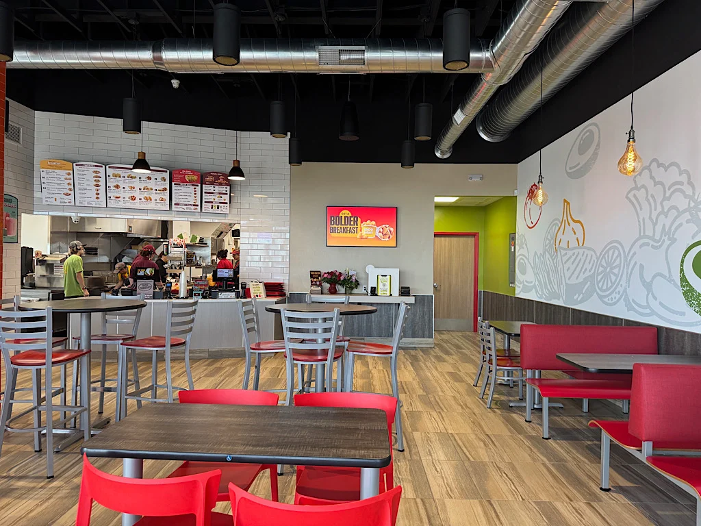 The fast-food restaurant is in a strip mall on the northwest corner of the Interstate 29 exit. It offers seating for about 50 and a double lane drive-thru.
