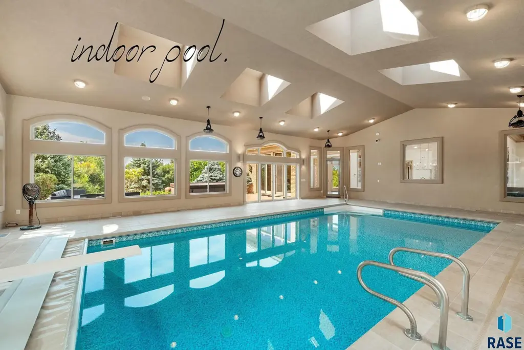 “Jump in your indoor pool any time of the day or night! Fall in love with this European-inspired estate sited on 5.95 acres of wooded wonderland,” listing agent Kathy O. Allen said.