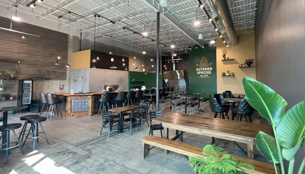 Miner Brewing hadn’t removed the 16 taps, the bar or tables and chairs, so Nussbaum acquired those. He installed a large chalkboard above the cooler where customers will read what’s on tap. The walls now feature Altered Species’ colors of forest and sahara, and Nussbaum has added lots of plants with more to come.