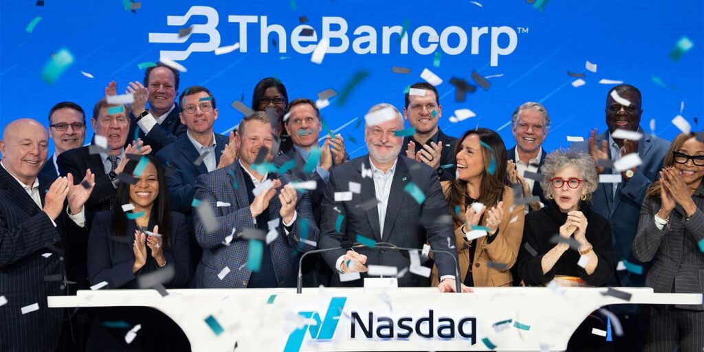 The Bancorp Inc. rang in its latest rebrand in a big way: ringing the opening bell at the Nasdaq stock exchange.