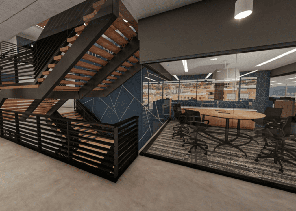 An open staircase will serve as a key design element, encouraging interaction among teams on both floors.