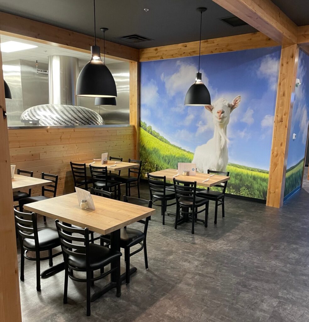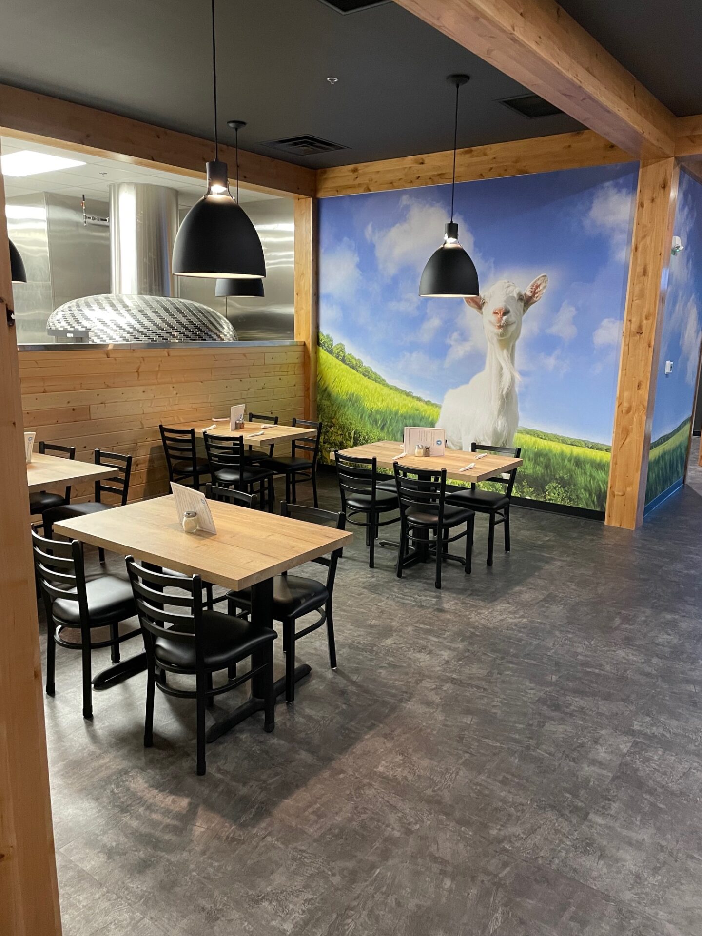 Some signature varieties include The Fainting Goat, made with roasted garlic, fresh rosemary, thin-sliced red onion, mozzarella cheese and crushed pistachios, and The Irish Goat, made with pesto, pepperoni, mushrooms, artichoke hearts and mozzarella cheese.