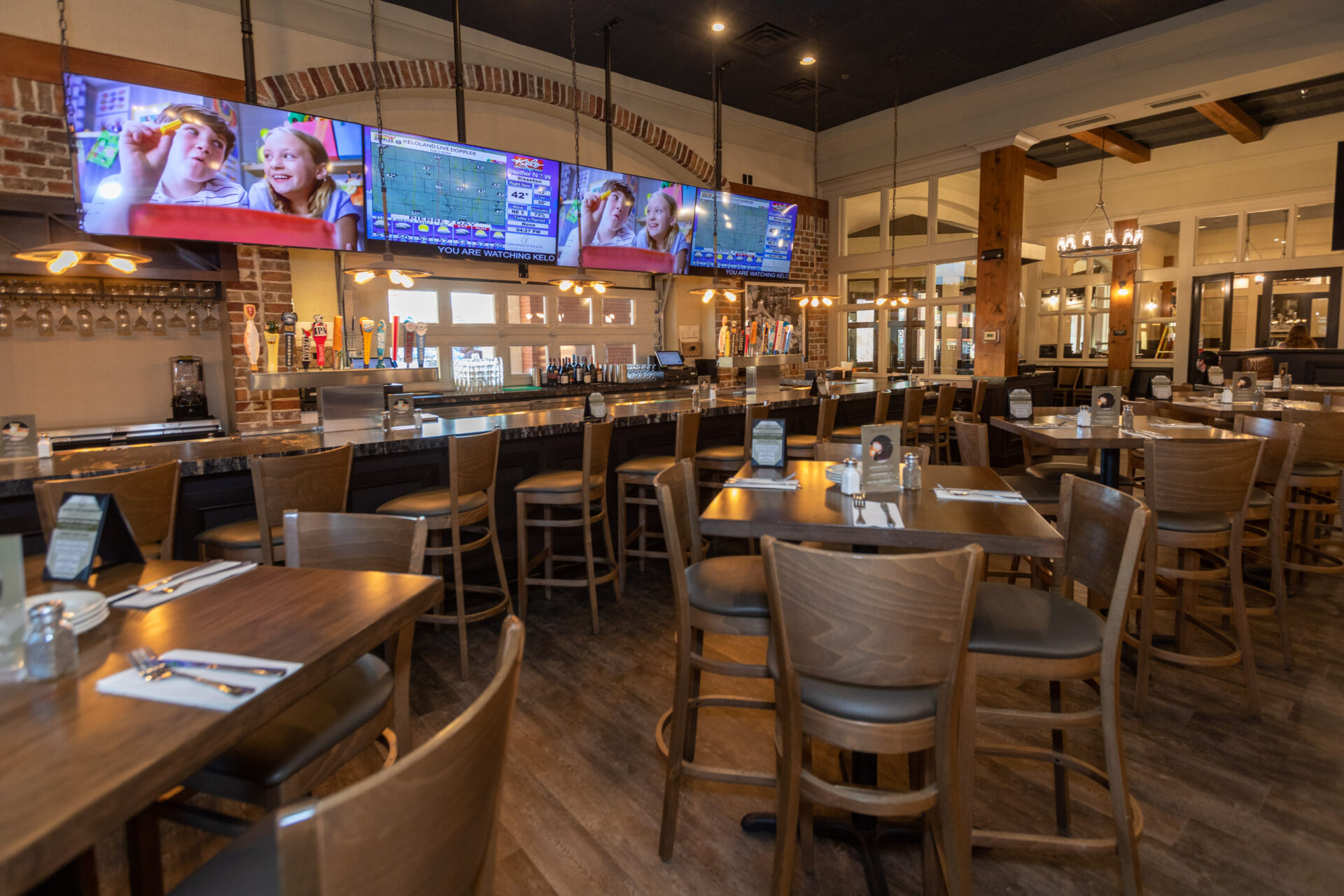 The menu features build-your-own burgers, salads and pizzas, with a popular Sunday brunch buffet served from 10 a.m. to 2 p.m.