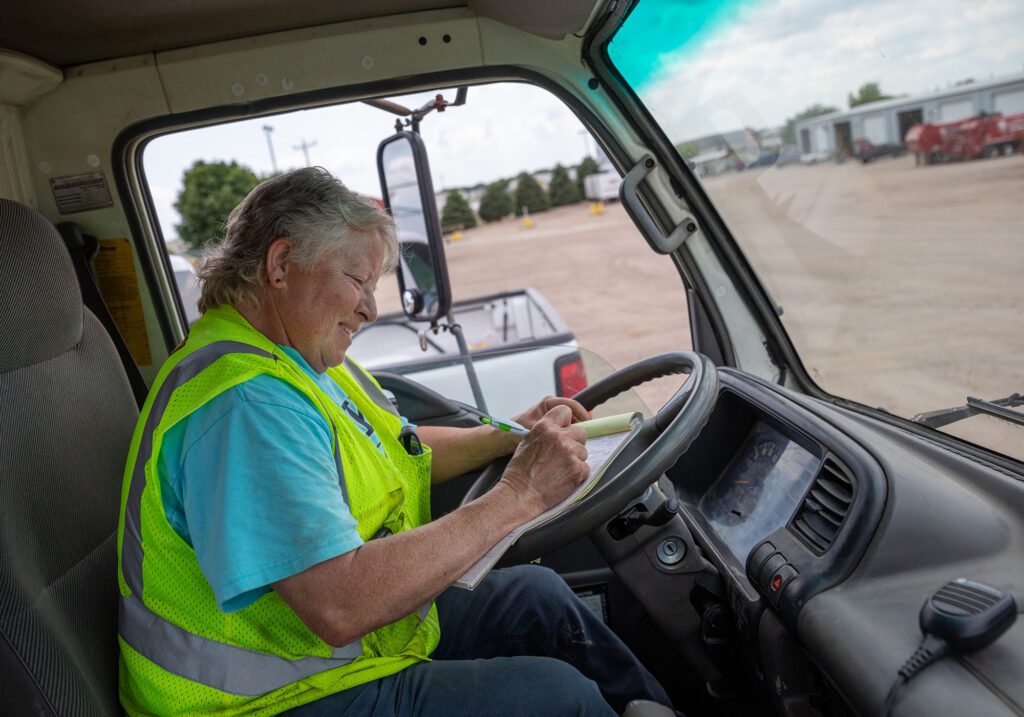 “He said the people are great here. And the people are great here,” she said, while acknowledging at first “it was a little nerve-wracking. In my position, you have to back up a truck for 70 percent of the job, and I’m 5-2. I couldn’t really back up my own car because I couldn’t see out the window.”