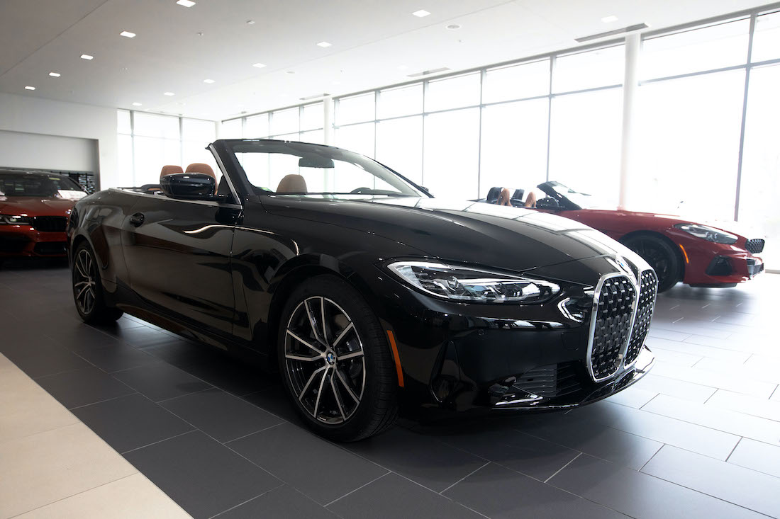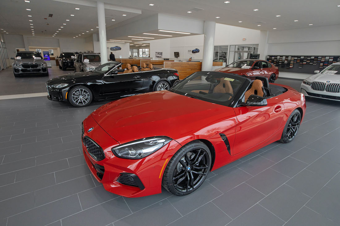 An M3 sold nearly as soon as it arrived at Luxury Auto Mall. A two-door M4 coming in behind it will be bright red with white seats.
