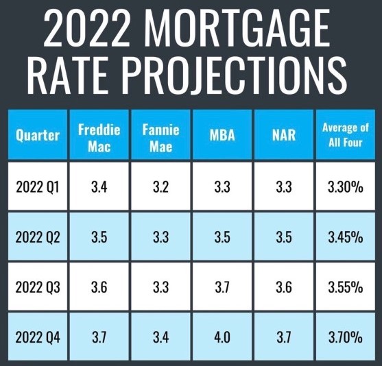 It is still predicted that we will see a tick up in mortgage rates in 2022. Every time the interest rate goes up, your buying power goes down. Keeping Current Matters highlighted what Frannie Mac and Freddie Mac are estimating that rates will rise to next year.