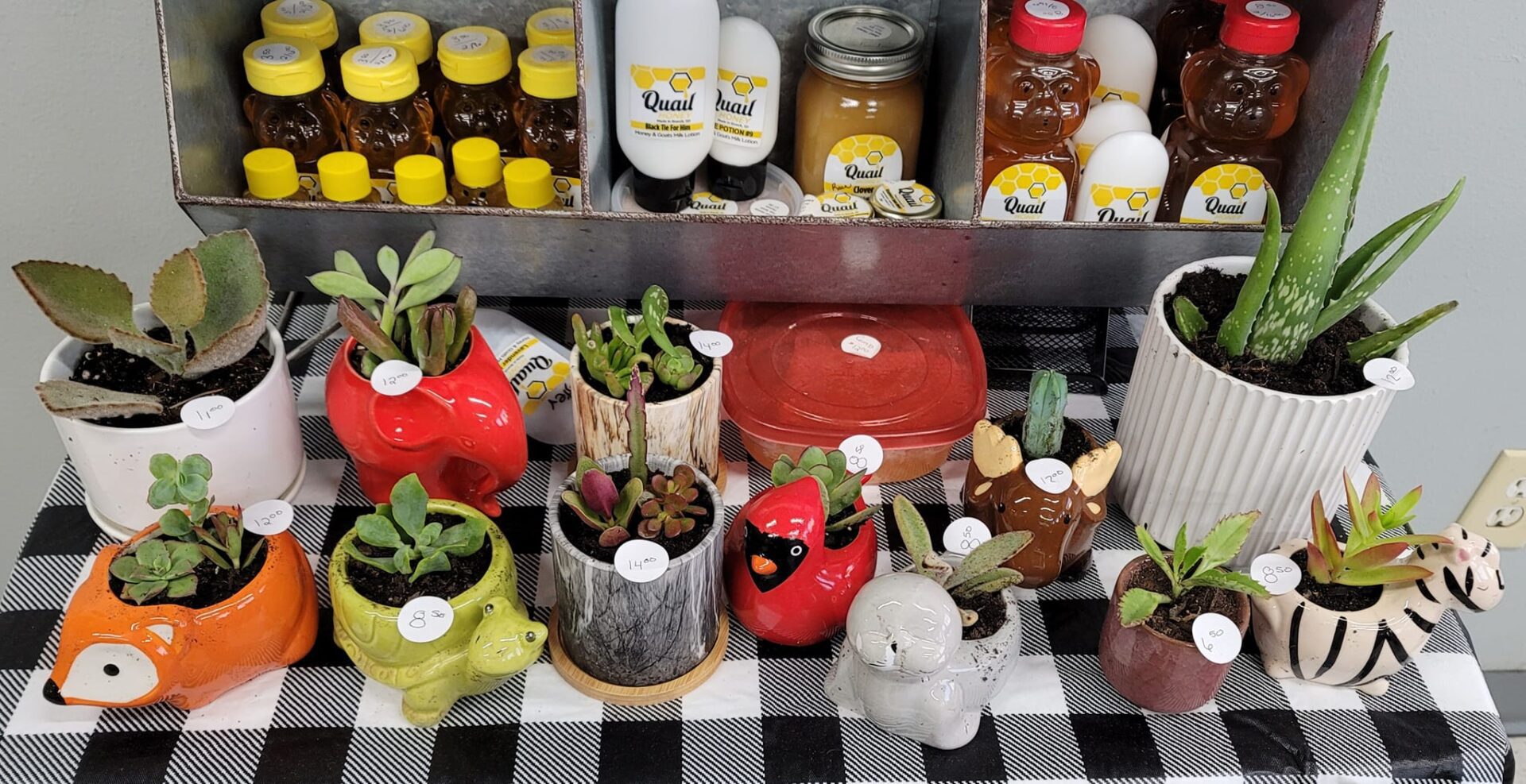 Customers can find pre-made pots or create their own arrangements with a build-a-bud bar. They’ll also be able to shop for Quail Honey products, which are no stranger to the market.