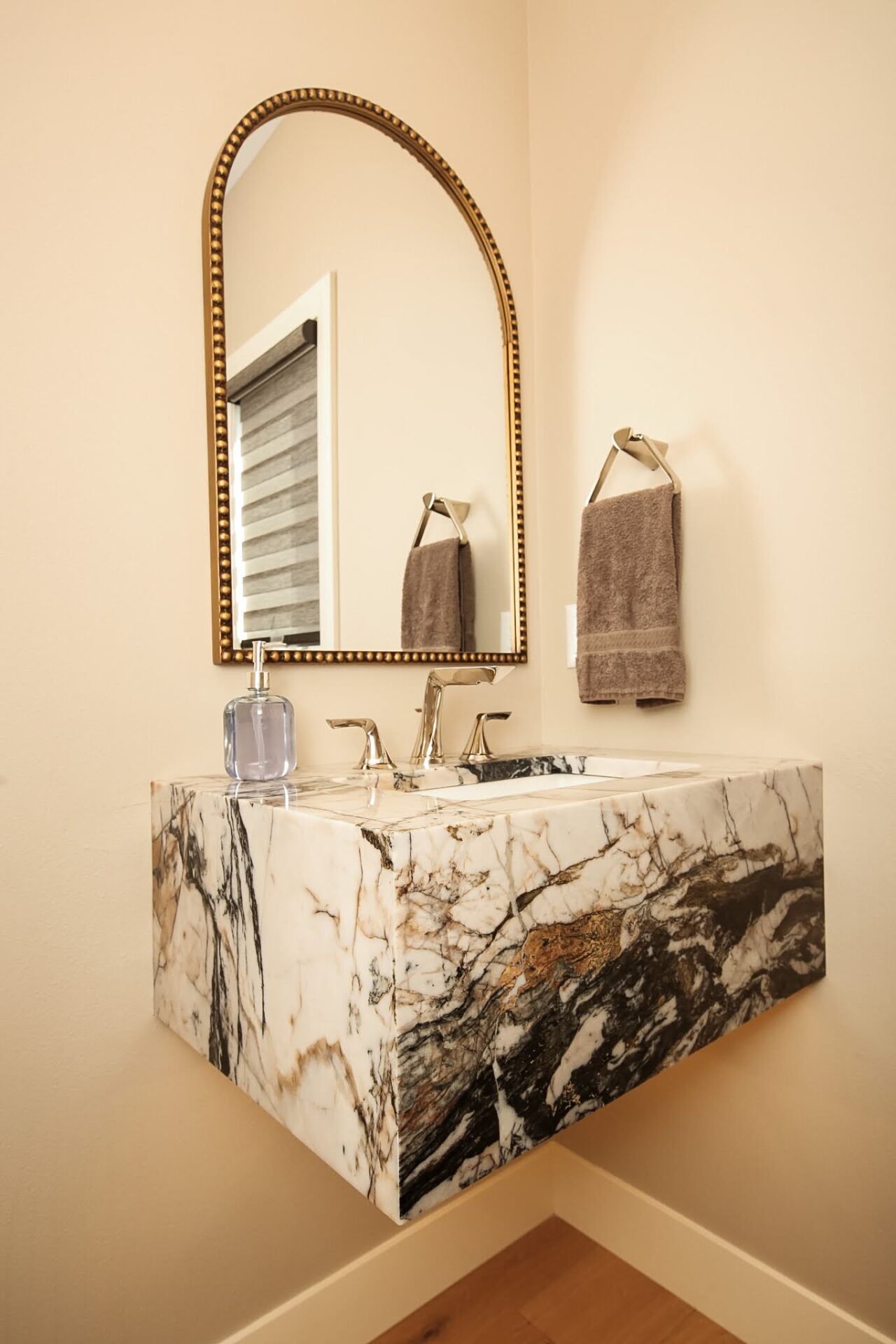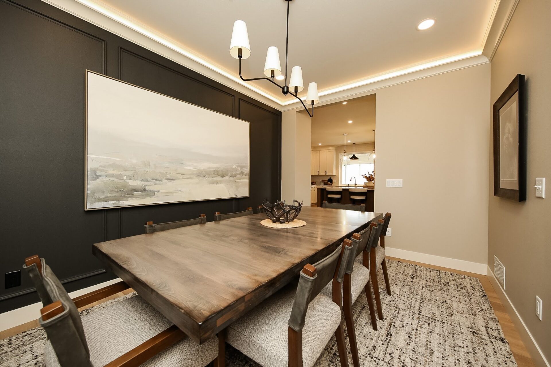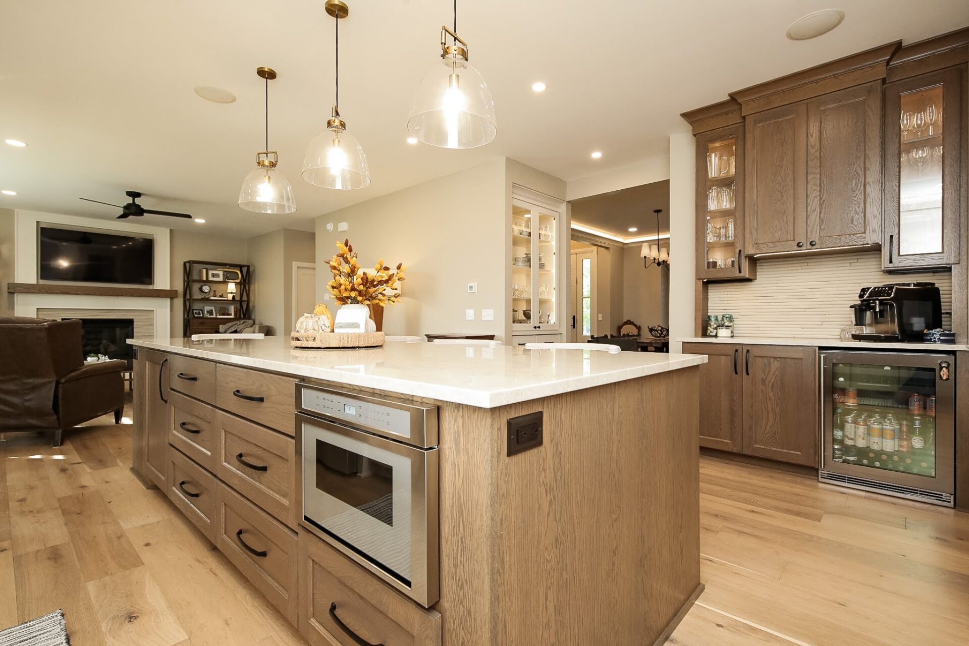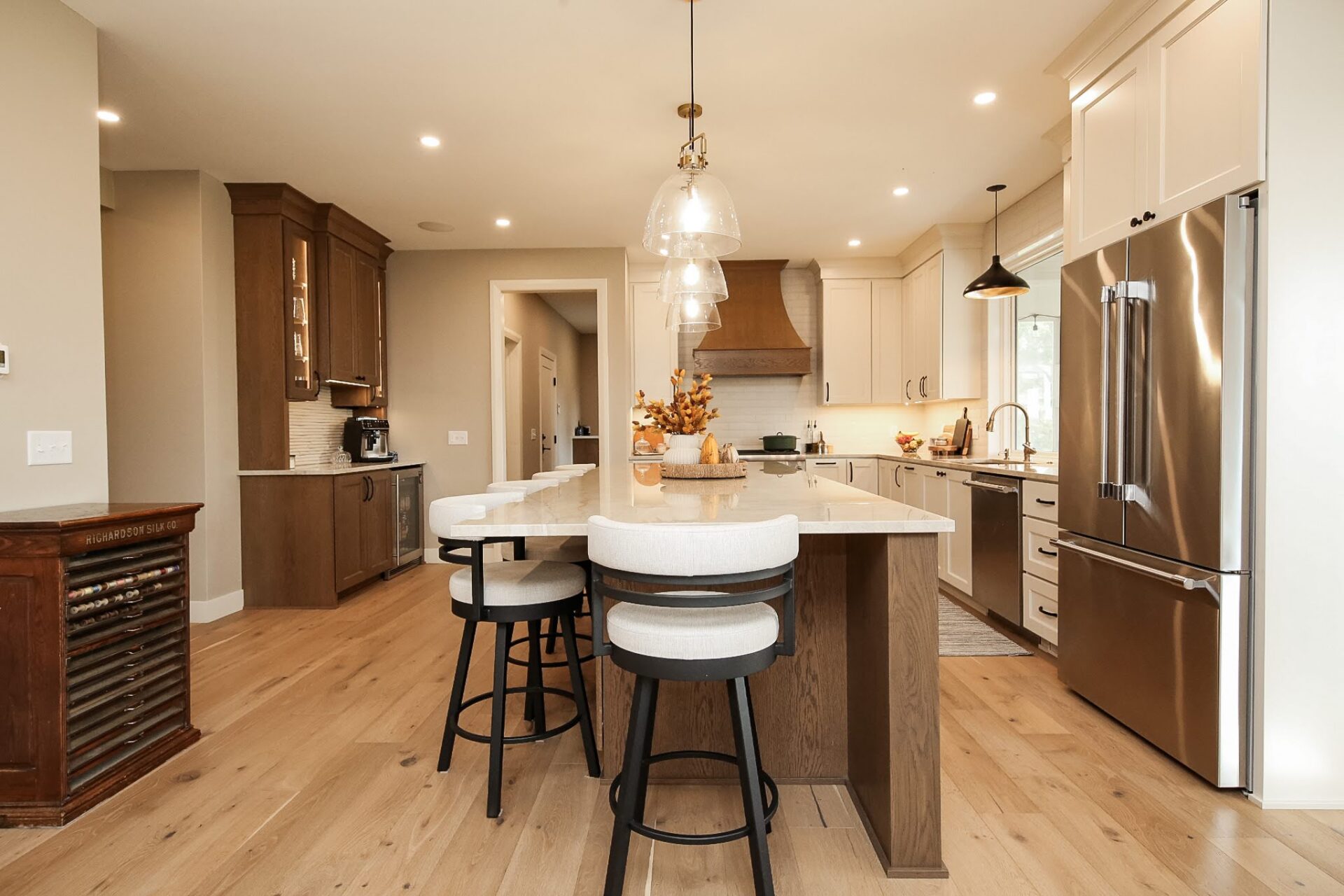 “This home highlights how people are getting away from the more pure white or white oak and going with more off white, darker stains, just things that add more depth and richness,” she said.