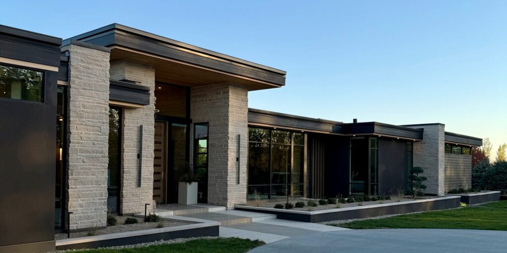 This striking residence exemplifies organic-modern design with a balance of warmth and simplicity achieved through natural materials, purposeful details and clean architectural lines.