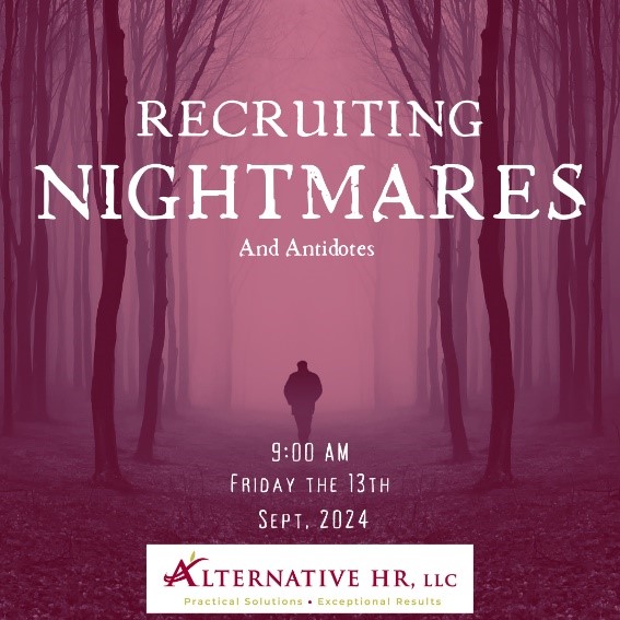 The two talent acquisition experts are preparing for an upcoming “Friday the 13th” webinar in September called Recruiting Nightmares and Antidotes. They will be discussing some of their recruiting tips and strategies, and answering questions from webinar participants.