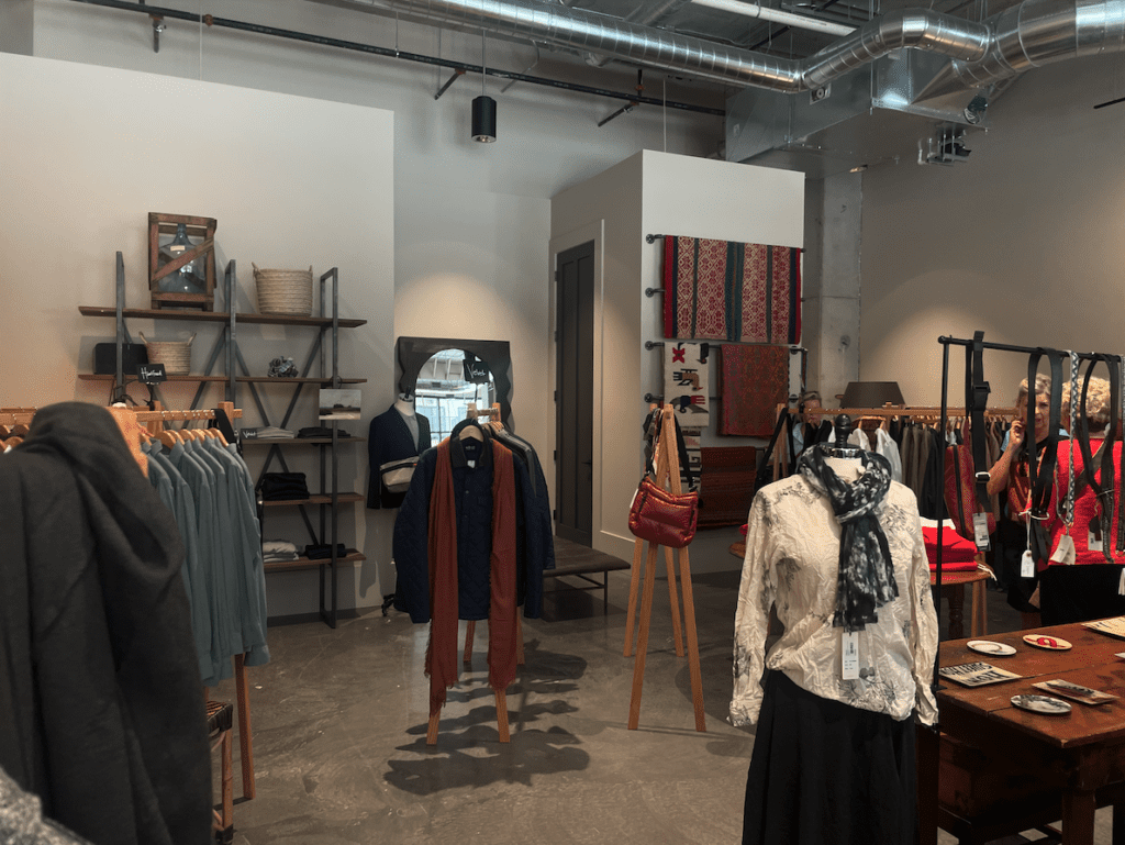 “So we’re very careful, and we don’t have a lot, which is great because you won’t be walking around town looking like someone else,” she said. “Our friends and neighbors downtown already are showing an interest. They walk over, they’re curious, and we’ve let people privately shop, and they’ve really enjoyed that. We can arrange a private shopping experience for you individually or as a group.”